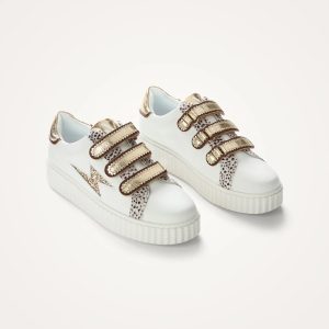 Baskets éclair Xenia blanc et or à scratchs