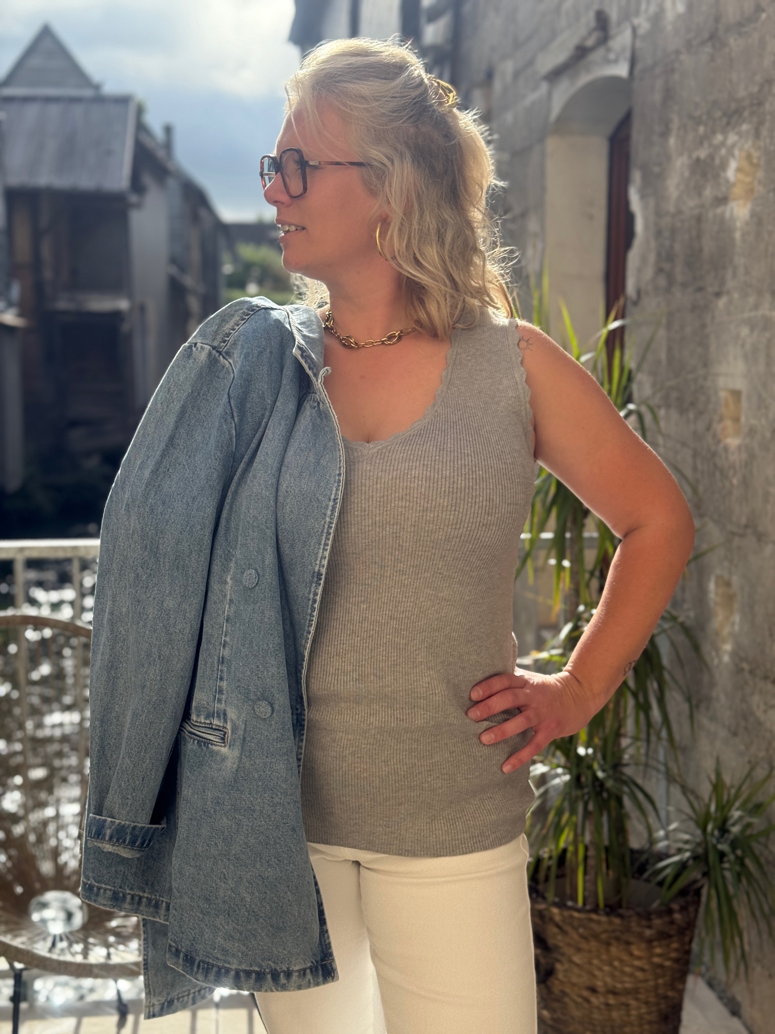 Le débardeur femme grande taille est facile à associer : portez-le avec un jean pour une allure décontractée, ou avec une jupe pour un style plus féminin. Il se prête aussi à des looks habillés avec un blazer ou une veste chic.