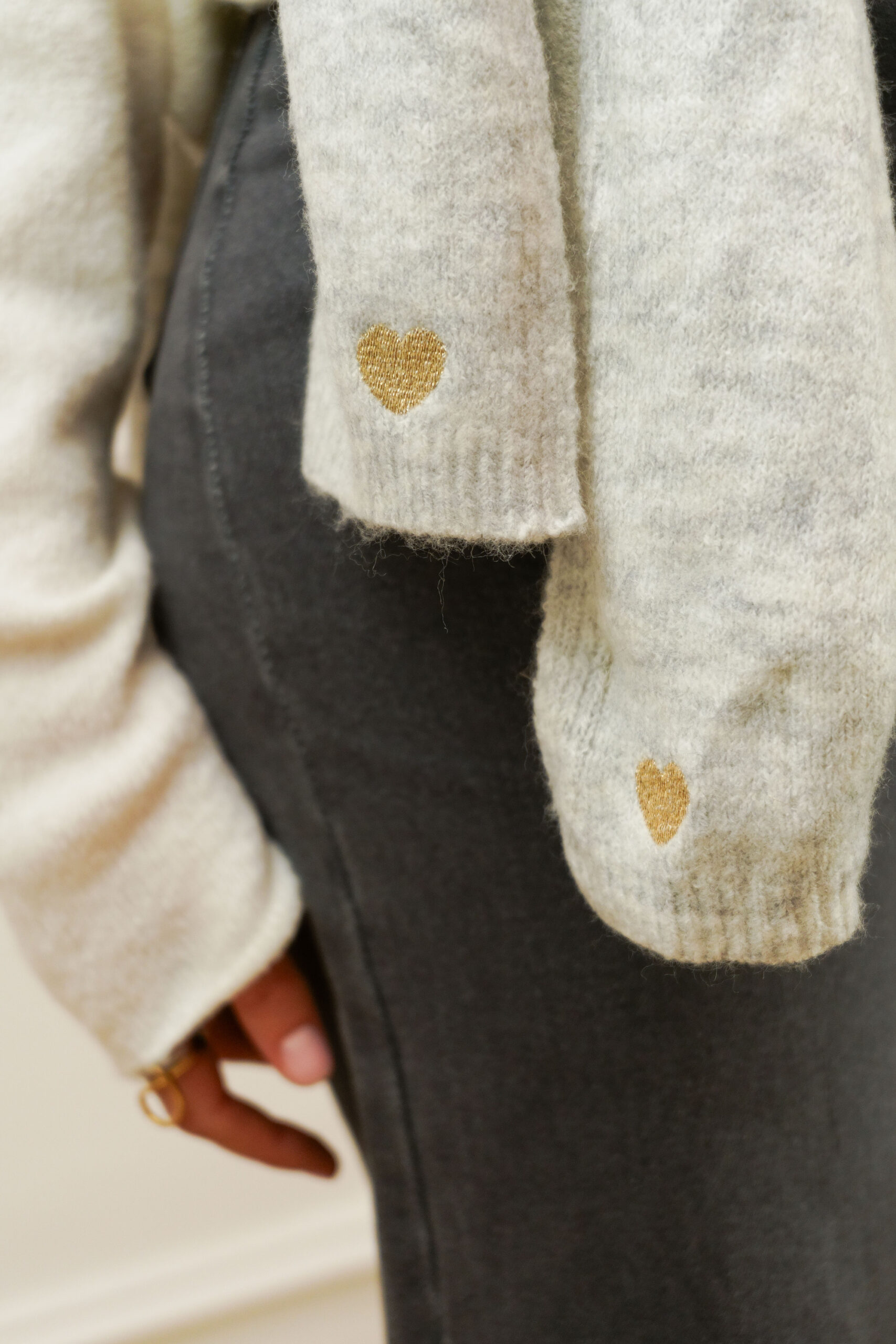 Conçue dans une matière douce et chaude, elle vous enveloppe de confort tout en apportant une touche brillante grâce à ses petits cœurs dorés brodés dans les angles.