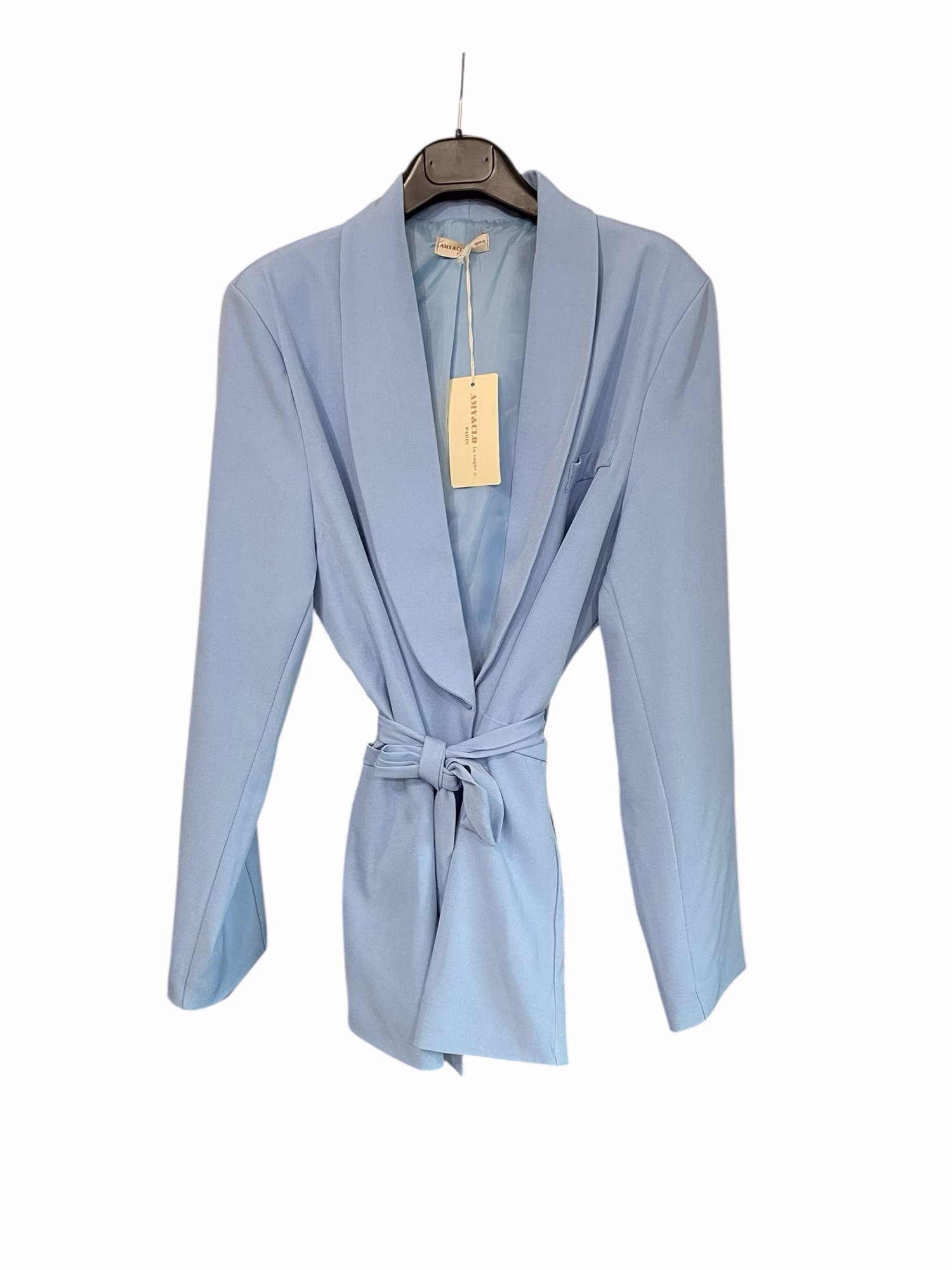 veste coupe droite doublée ,sans boutons peut se porter croisée grâce a la ceinture