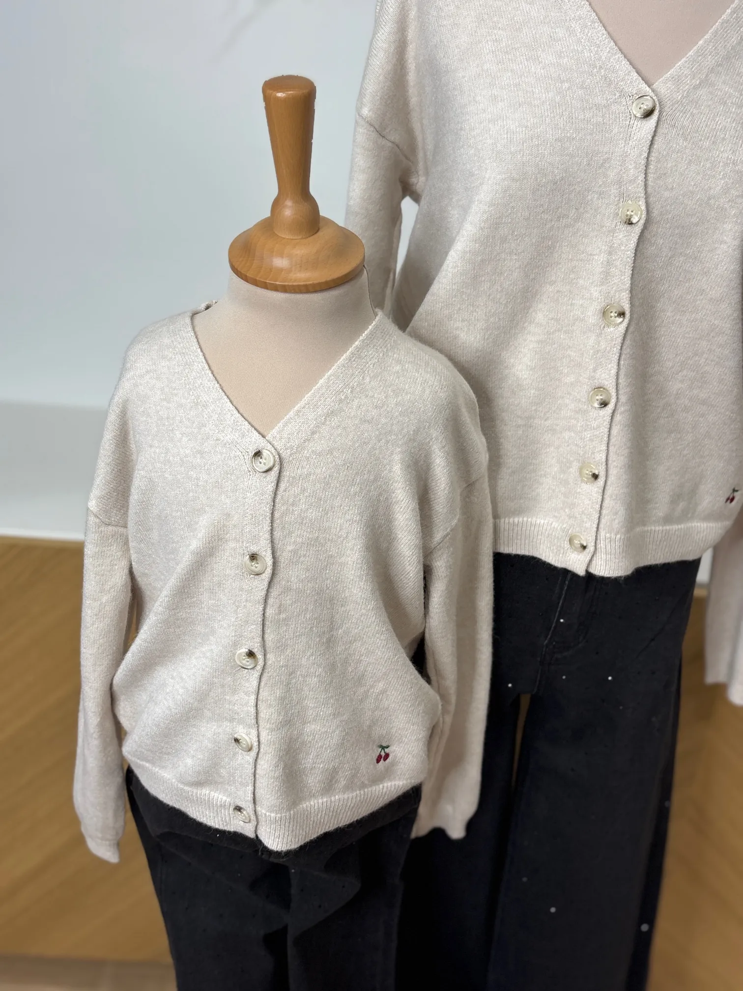 Le gilet beige enfant allie élégance et douceur, grâce à sa maille fine et sa cerise brodée pleine de délicatesse.