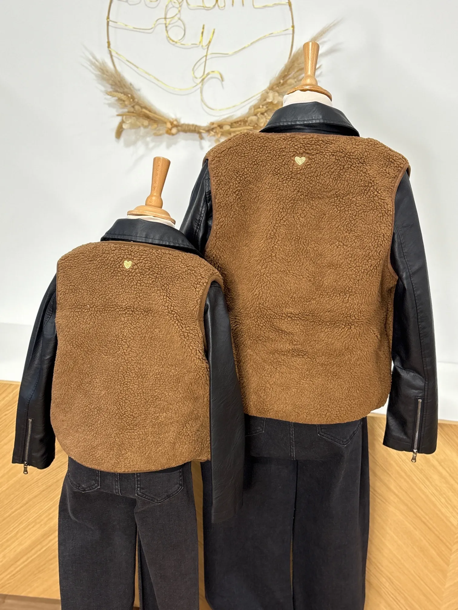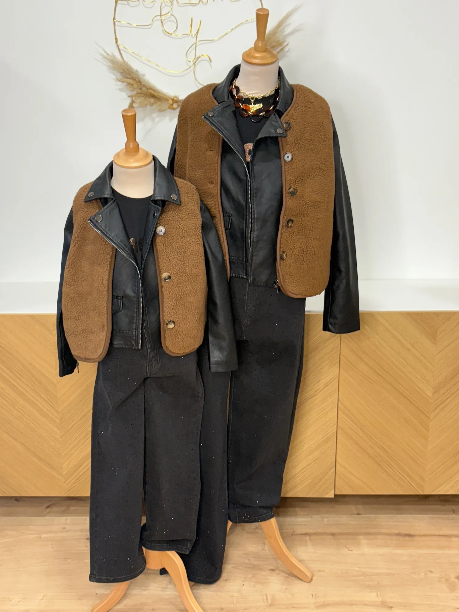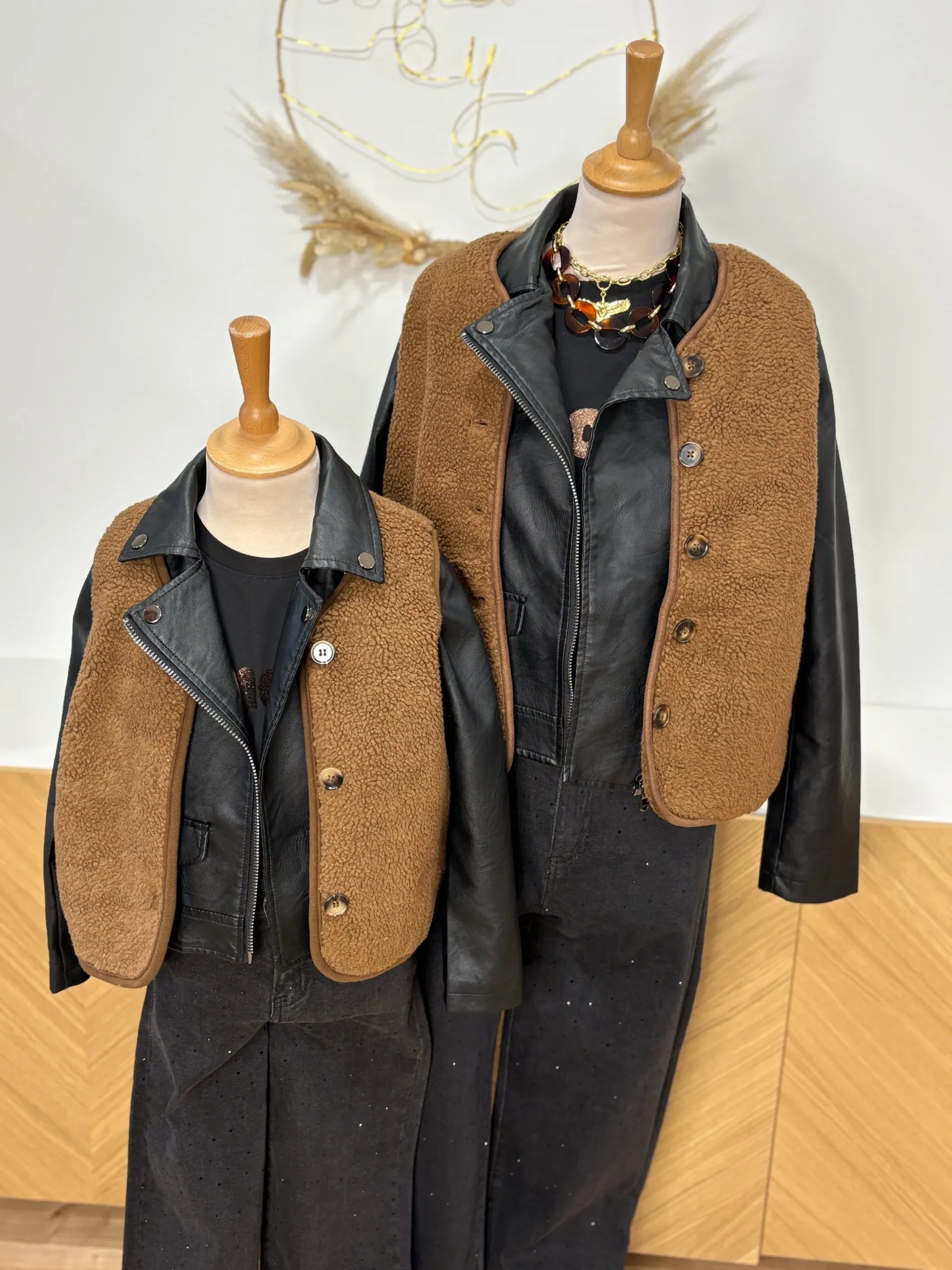 Associez votre gilet moumoute marron à un pantalon fluide ou une robe longue bohème pour un look d’hiver cosy et féminin.