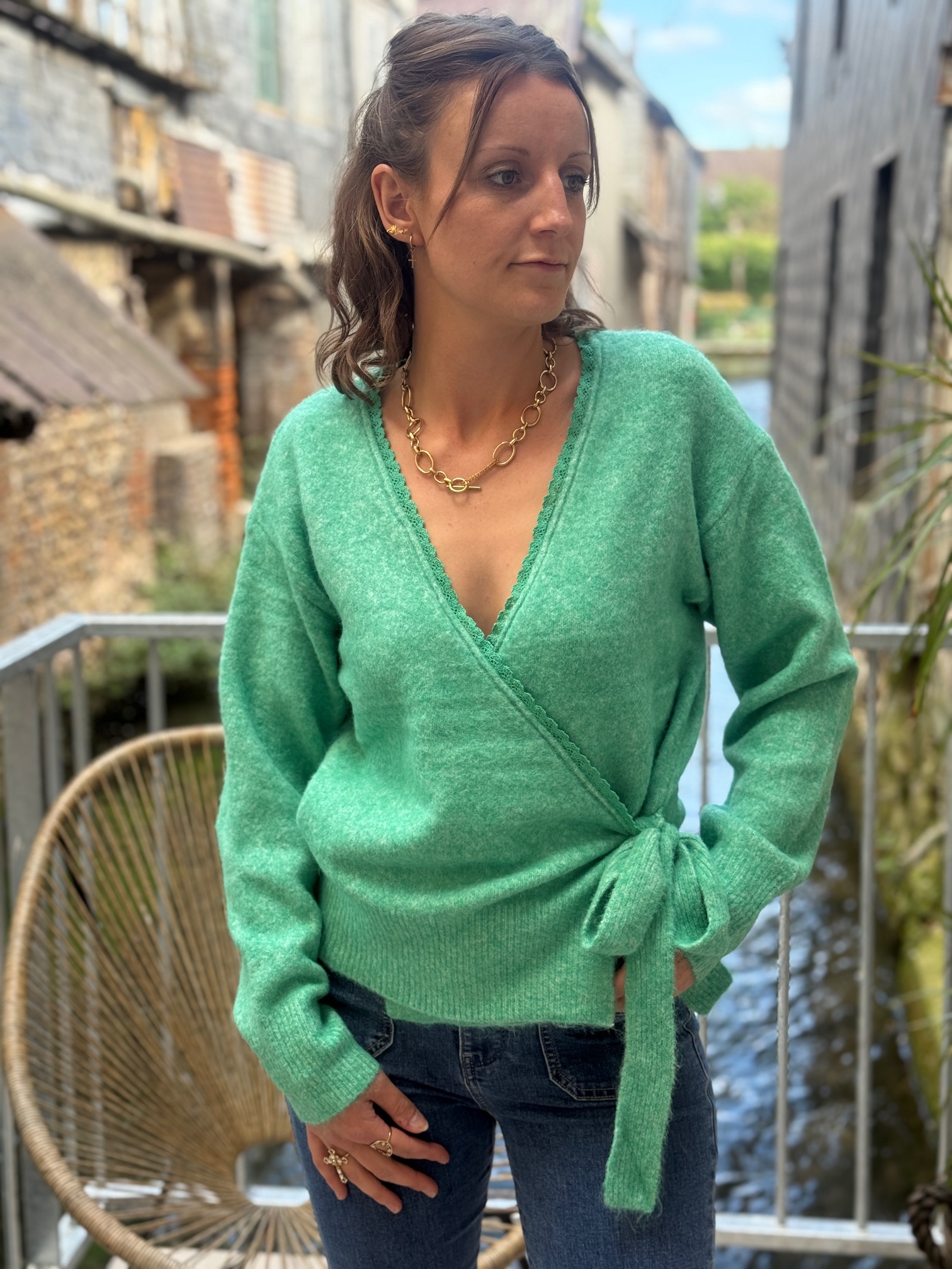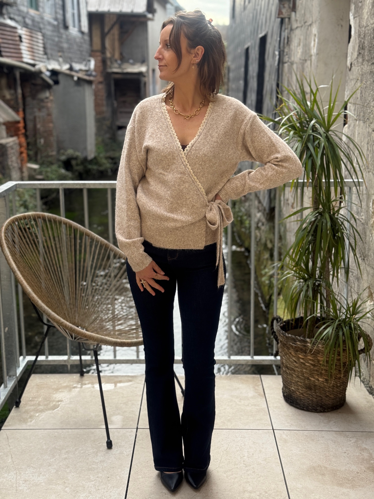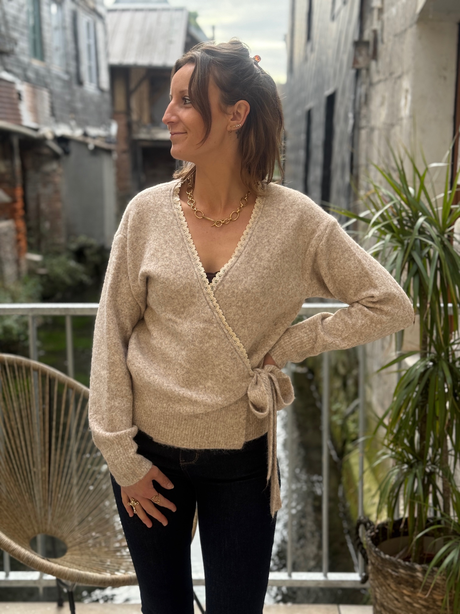 Ce modèle combine style, confort et polyvalence. Sa maille douce, enrichie en laine et spandex, garantit chaleur et souplesse. La coupe cache cœur apporte une touche élégante et féminine, idéale pour mettre en valeur votre silhouette.