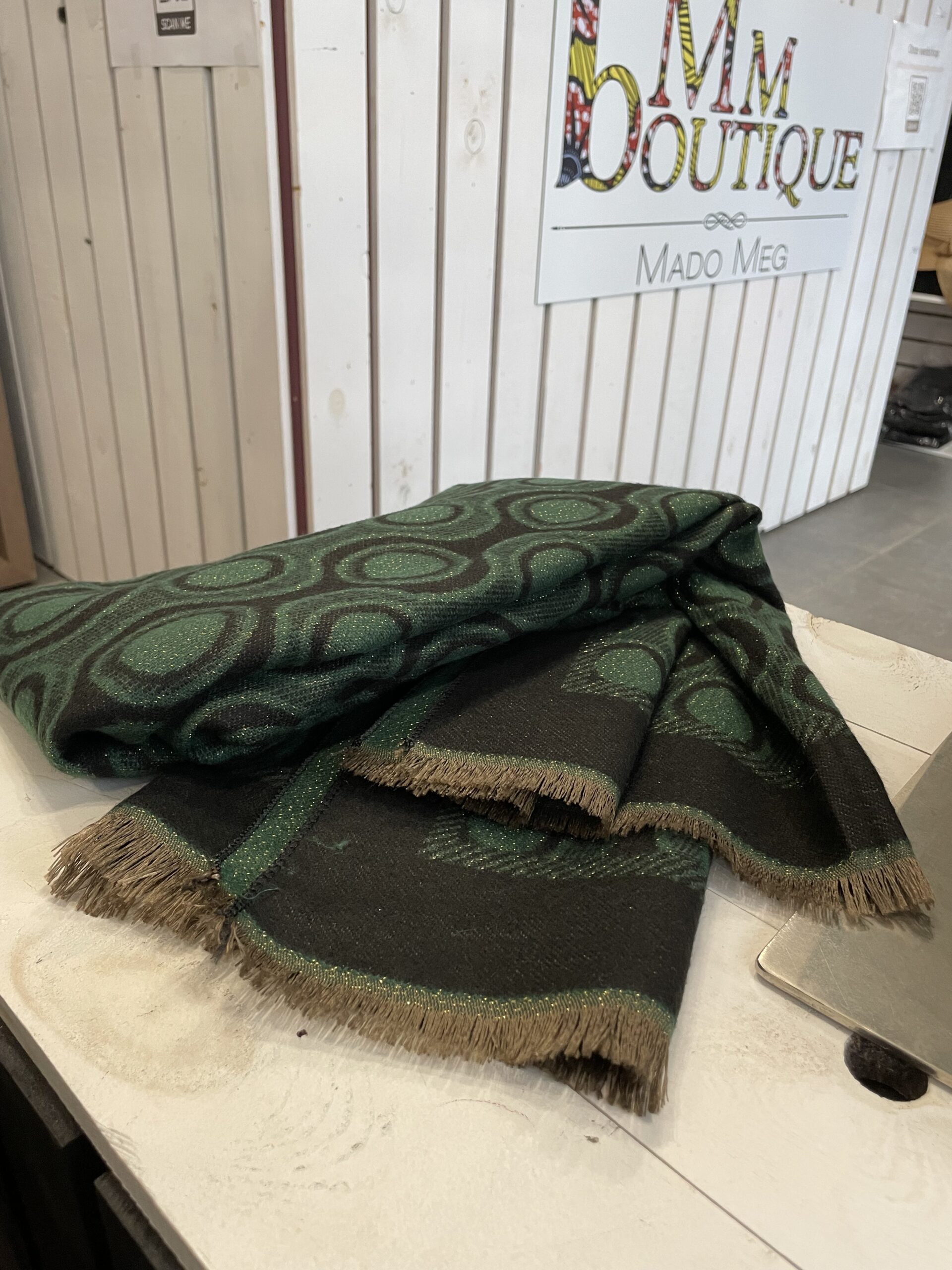 belle et grande écharpe de forme rectangle avec des mini franges aux extrémités