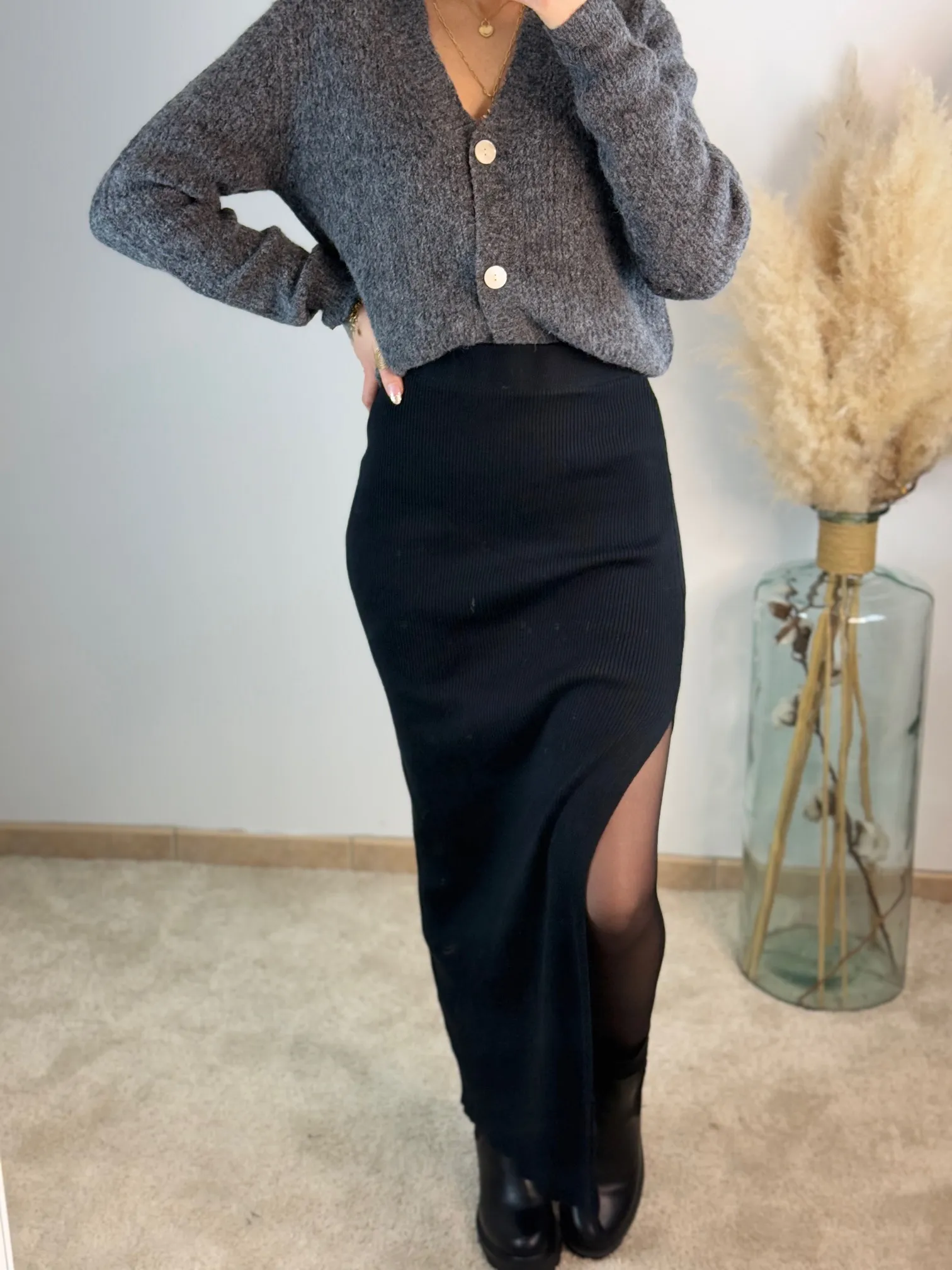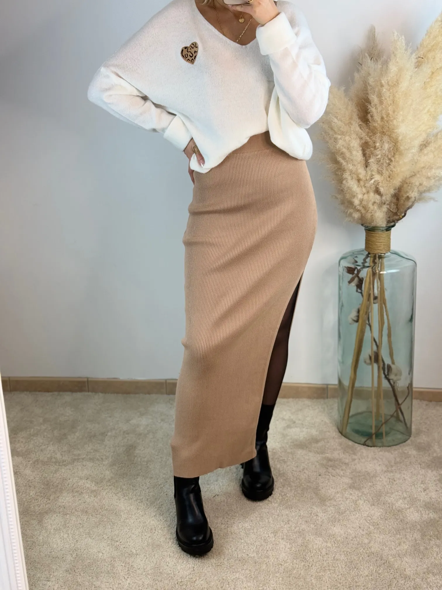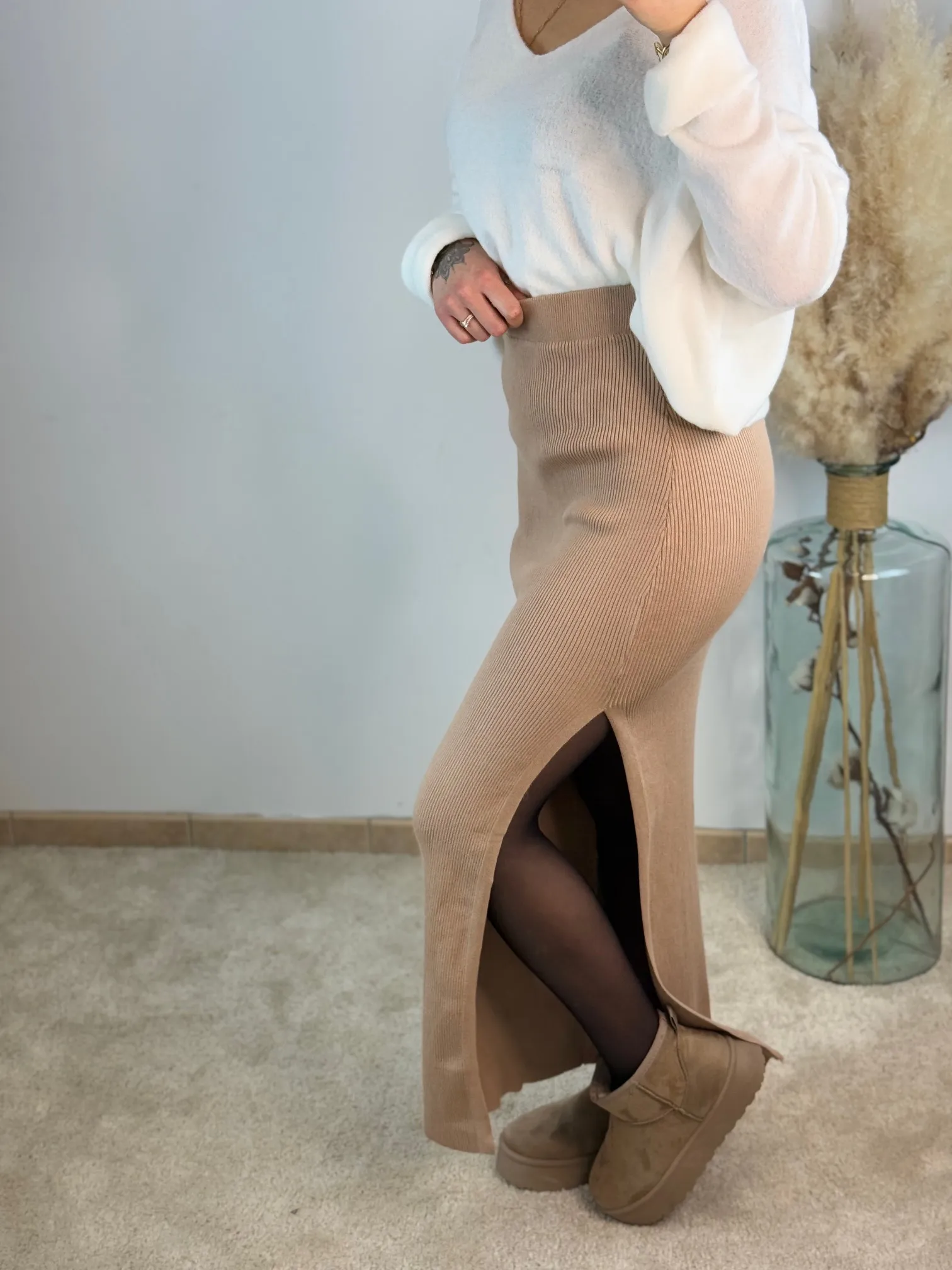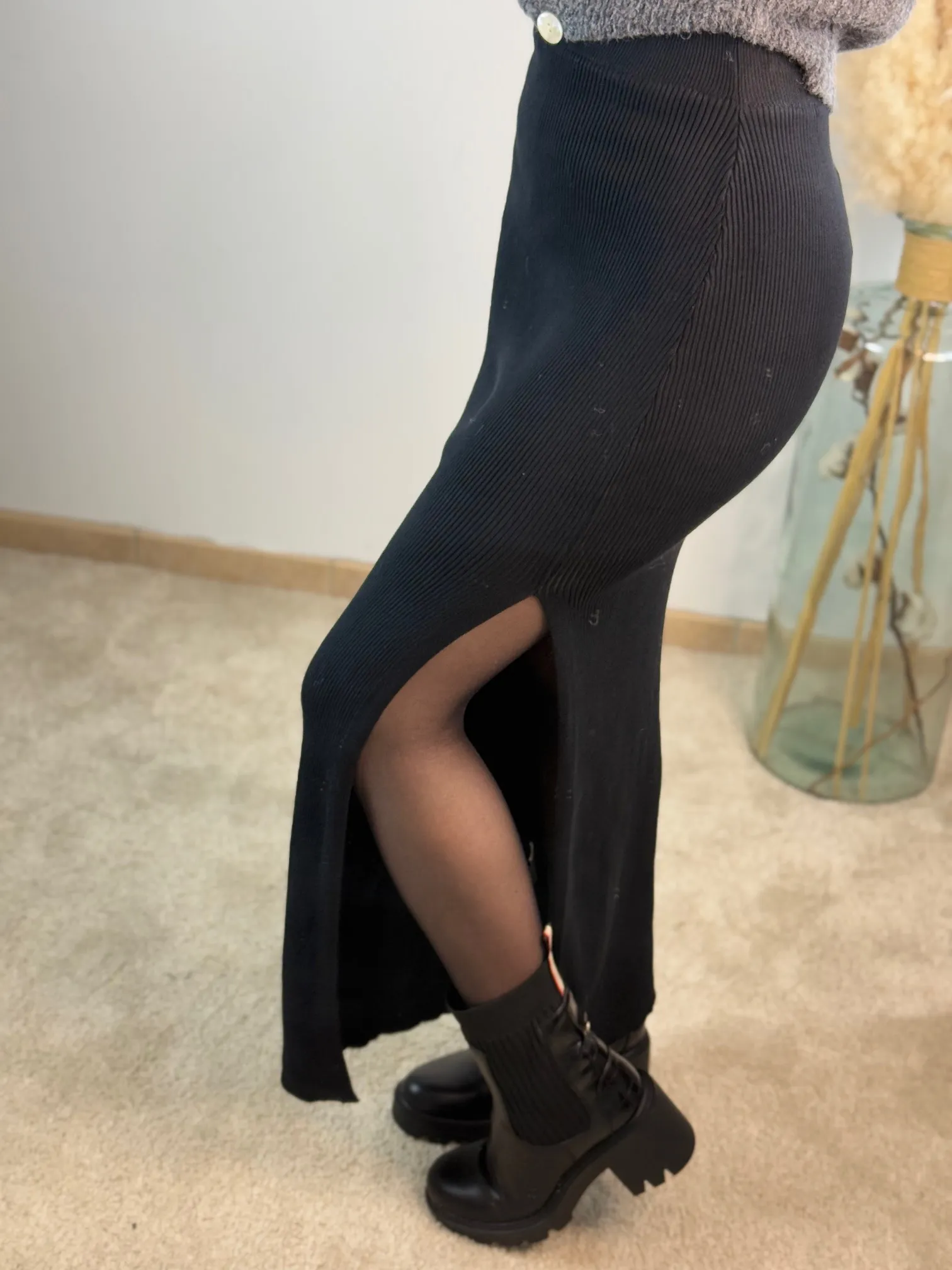 La jupe longue en maille côtelée se prête à toutes vos envies :