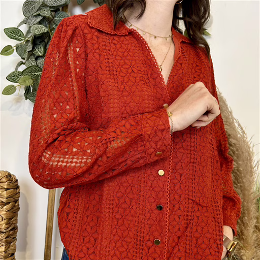 K005- Blouse Coton brodée (T36-T40) (rouille)