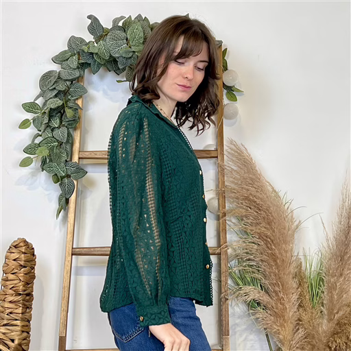 K005- Blouse Coton brodée (T36-T40) (vert sapin)
