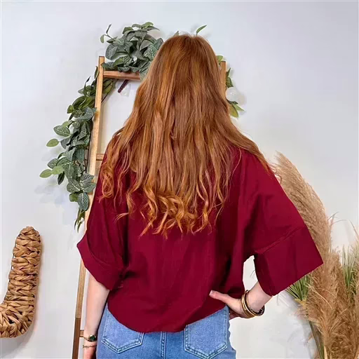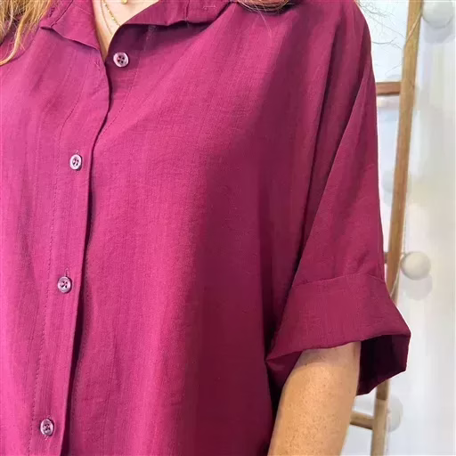 Chemise manches courtes unie de fabrication italienne. Légèrement froissée cette chemise est boutonnée de haut en bas. Ici portée avec un jean Voggo à 18.90€.