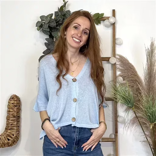 Vous l’adorez en version Pull, le voici en version Gilet, notre modèle en coton fabriqué en Italie avec de nouveaux coloris. Pull hyper tendance à poser sur une blouse ou une robe, le must-have de cette saison ! Ce gilet court en maille avec un col V, 3 boutons en bois et des manches 3/4.