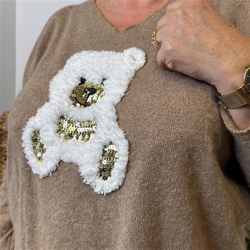 Ce Pull fond uni de fabrication italienne pour femme est proposé avec son patch Ourson sur le devant. Proposé en taille unique il conviendra du 42 au 48 en fonction des différentes morphologies. Ce pull coupe droite est confectionné en maille un tissu doux et chaud sans être trop épais rendant ce dernier idéal pour les saisons fraîches. Il présente un col V, et des finitions cousues. Le Must Have de cette année 2025.