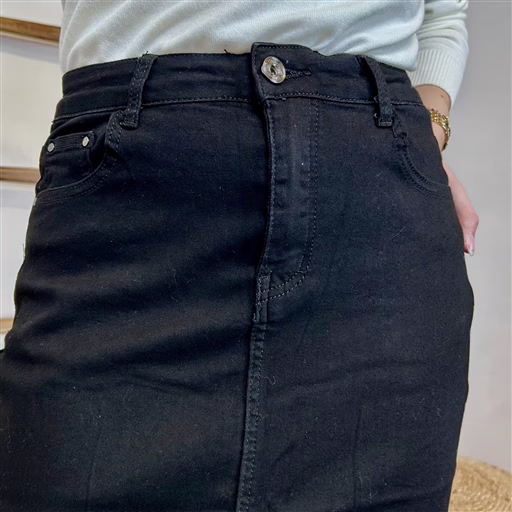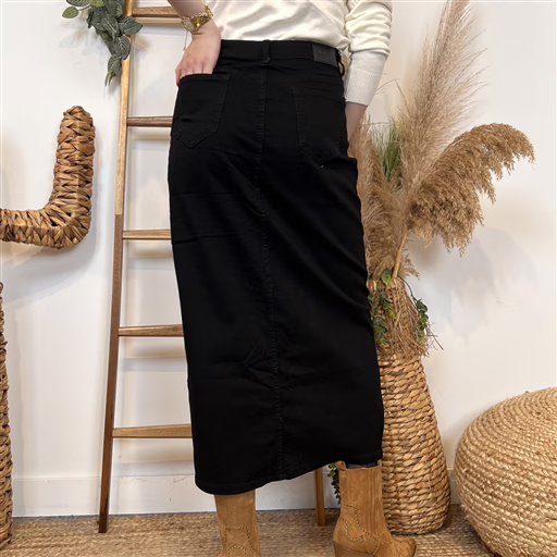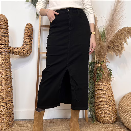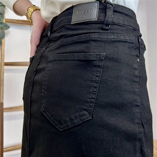 Cette jupe en jean Voggo est une pièce incontournable. Ce modèle se distingue par sa simplicité et ses rivets métalliques sur les poches. Une jupe longue femme fendue à la coupe très légèrement évasée, confectionnée dans une matière extensible ultra confortable. Cette jupe se porte aussi bien avec un T-shirt, ou une Blouse ou un pull quand les jours se rafraichissent. Vous connaissez les jeans Voggo by BleuClair, vous apprécierez la version jupe Voggo.