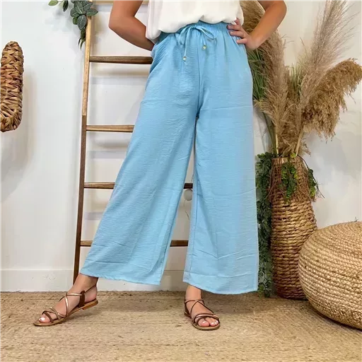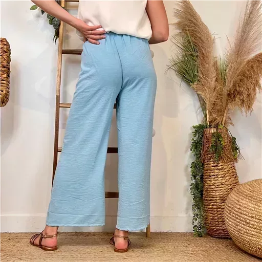Très confortable ce pantalon multiplie les bons points. Outre son PRIX MINI ! Une fibre légère crêpée avec de la tenue. Une coupe large , une belle profondeur, Bande plate élastiquée tout autour de la taille il est très agréable à porter, Son liennouer lui apporte une touche de fantaisie … De quoi composer un look décontracté avec une tunique et/ou un pull coloré. Ce modèle de pantalon dans l’air du temps conviendra du 36 au 40. A porter avec une gilet ou un pull Loose.