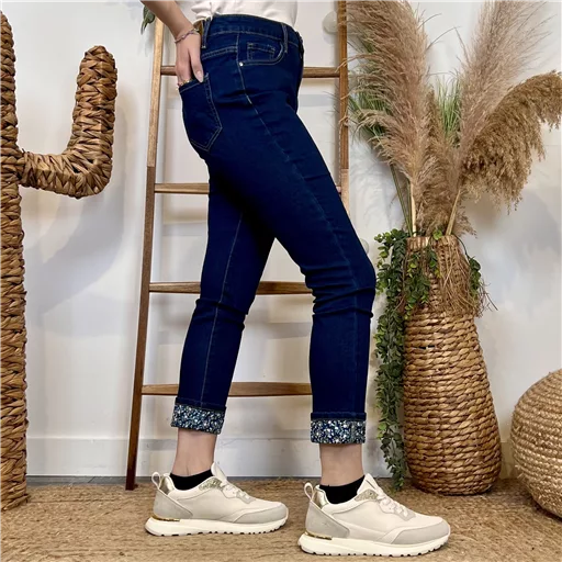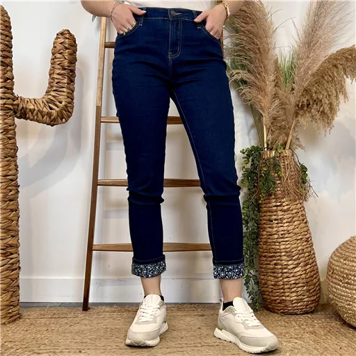 Modèle taille haute proposé du 36 au 44. Les jeans idéaux au juste prix. Ce modèle est proposé avec un revers imprimé Liberty. La coupe parfaite pour les femmes pas trop grandes (un jean qui deviendra une coupe slim sans ourlet à faire) . Des jeans Voggo au style tendance : coloré, bruts & denim.. Des classiques appréciés par toutes les femmes ! Le jean est doté de deux poches fendues sur le devant et de deux poches plaquées à l’arrière. Pour plus de fantaisie regardez du côté des modèles jeans melly and co.