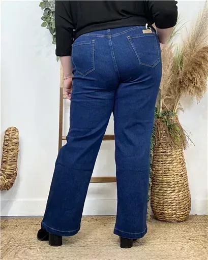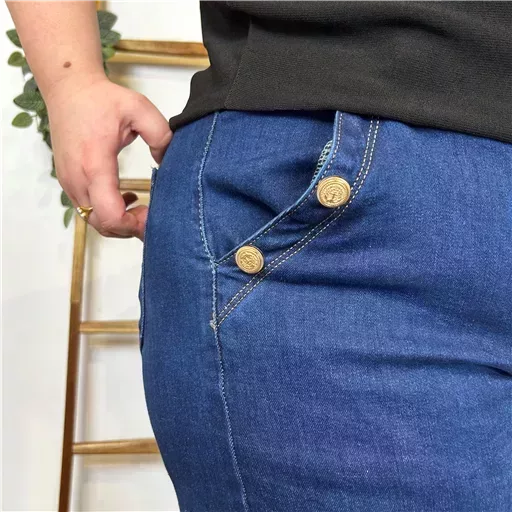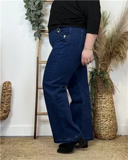 Ce jean Flare, de la marque Voggo est fabriqué dans un tissu de qualité. Fantaisie avec ses boutons officier. Il est disponible dans une large gamme de tailles, de la 42 au 50. La coupe flare allonge la jambe et donne une silhouette élégante. Les 6 boutons de chaque côté des poches sont une caractéristique distinctive de ce pantalon. Ils lui confèrent un style unique et raffiné. Ce pantalon peut être porté de différentes manières. Il peut être associé à une blouse ou un T-shirt pour une tenue décontractée ou à un Pull ou un blazer pour une tenue plus habillée.