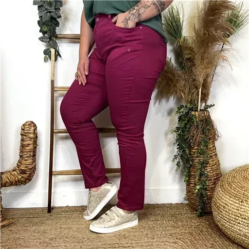 O153- Jean coupe Slim Voggo (T42-T52) (framboise)