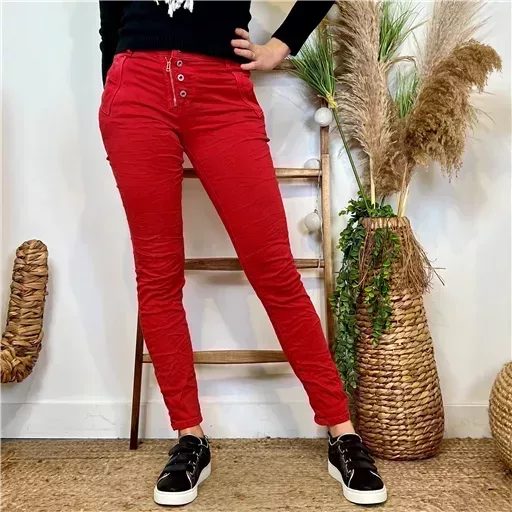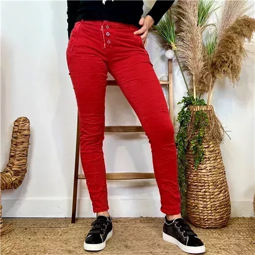 Tous ces jeans Melly and Co , sont proposés volontairement froissés délavés et shootés ainsi. En acquérir un c’est le risque de Vous ne plus pouvoir vous en passer, et toutes les couleurs proposées vous séduiront au fil des saisons.!. Si vous n’aimez pas ce concept, ce froissé non permanent disparaîtra avec un simple coup de fer.