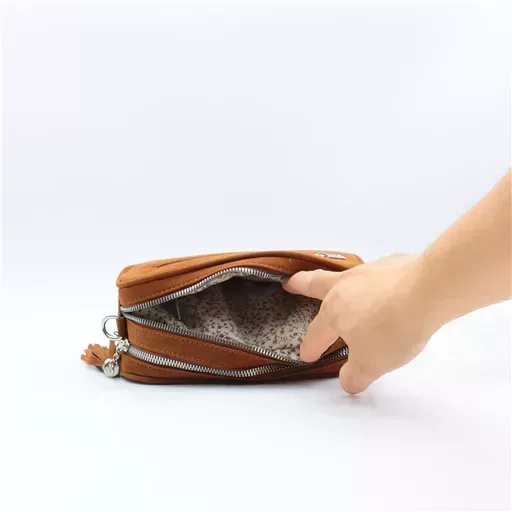 – Bijou de sac pompon.👜 Sac aspect daim – Chic et polyvalent.