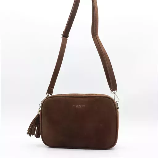 P387- Sac Zippé Pompon aspect Daim Flora & Co (marron)