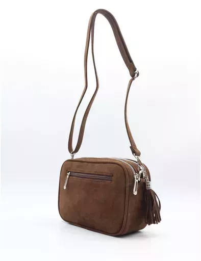 Soyez le premier à laisser votre avis sur “P387- Sac Zippé Pompon aspect Daim Flora & Co (marron)”
