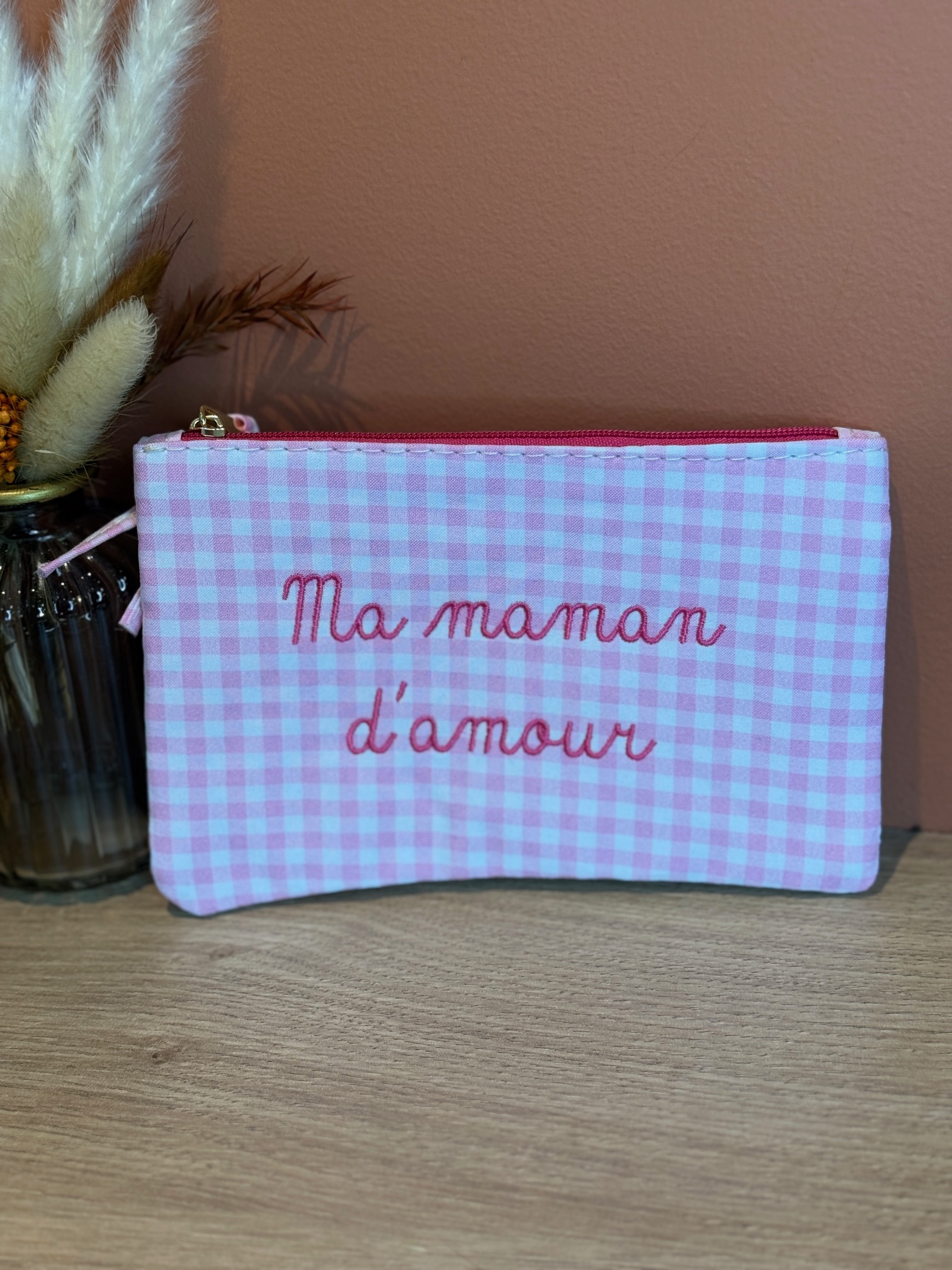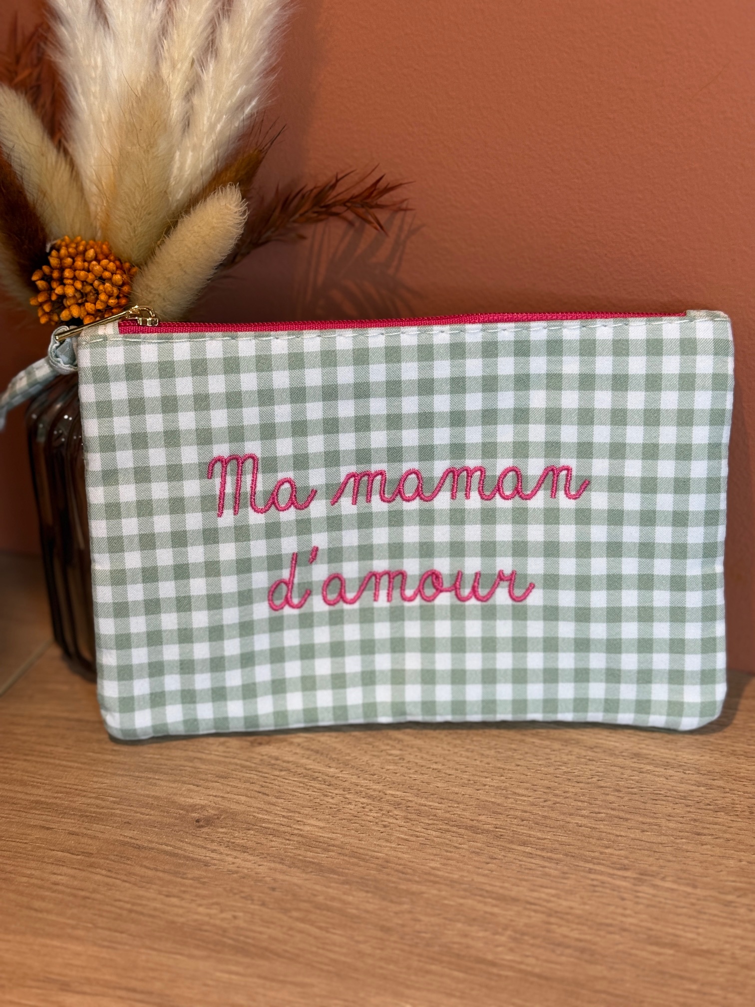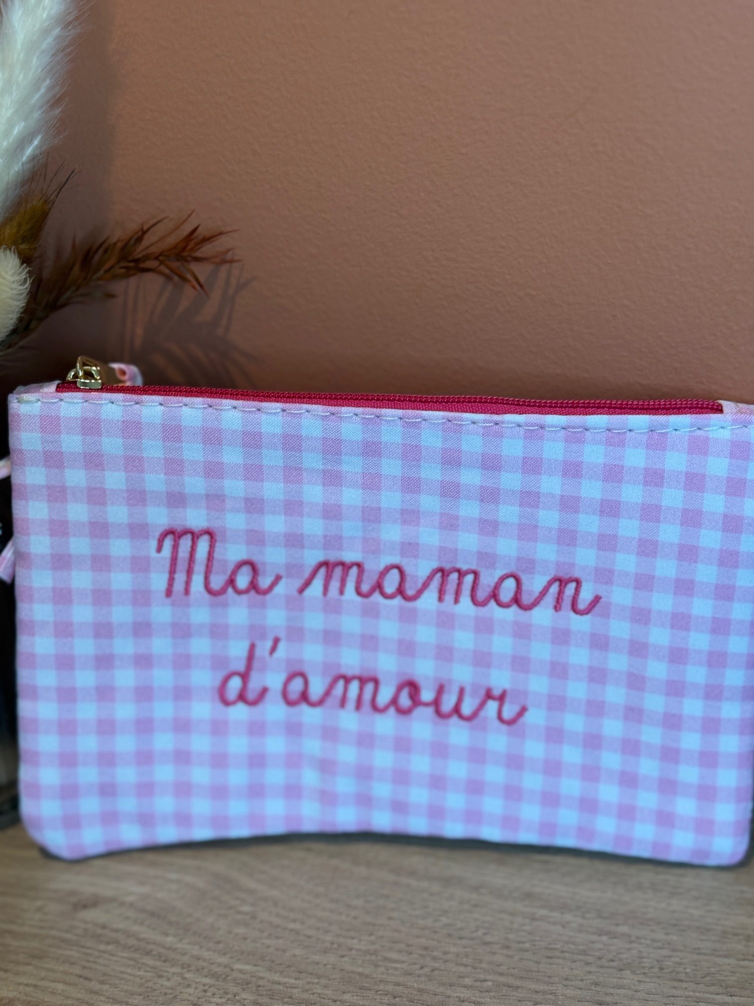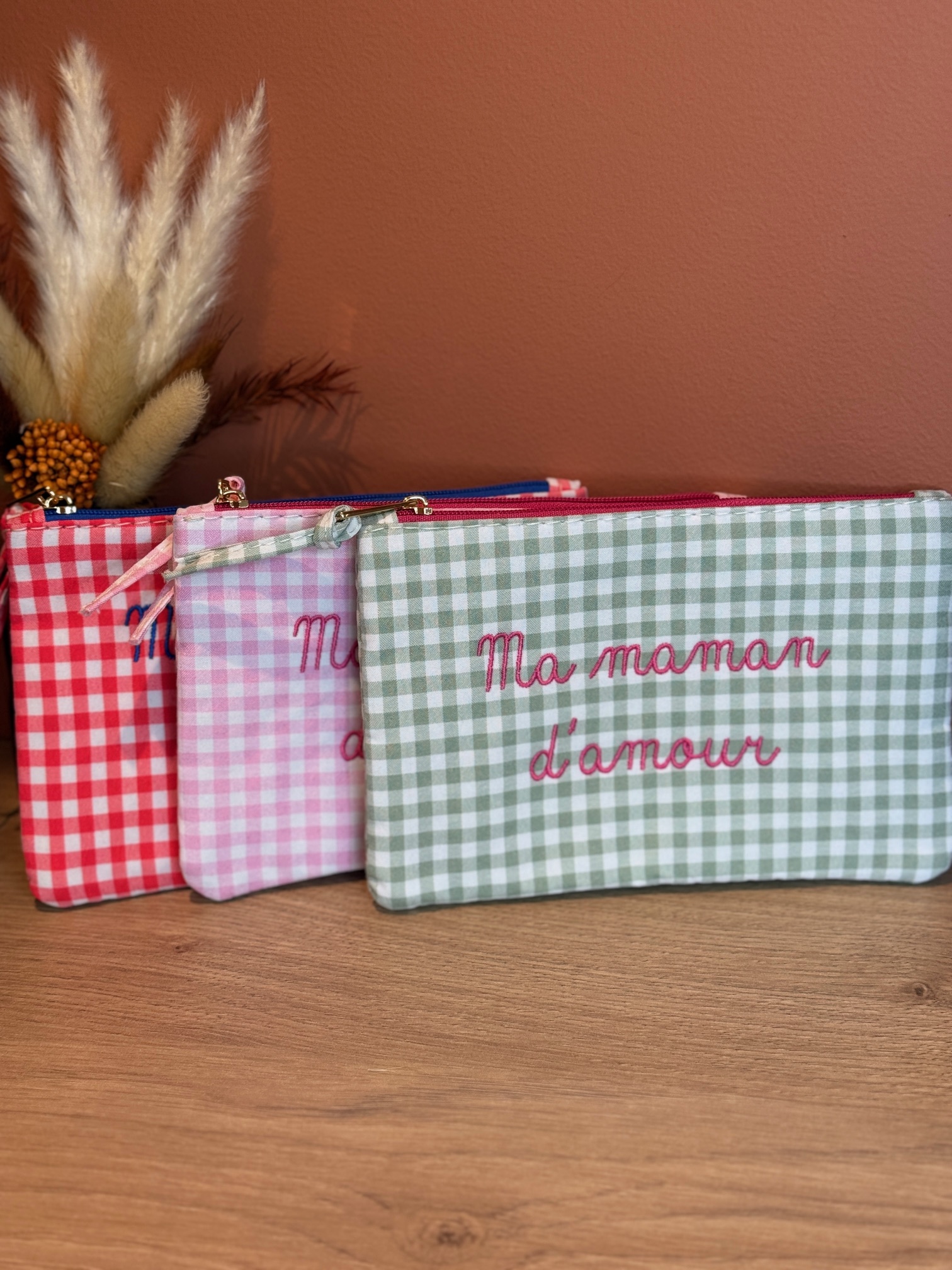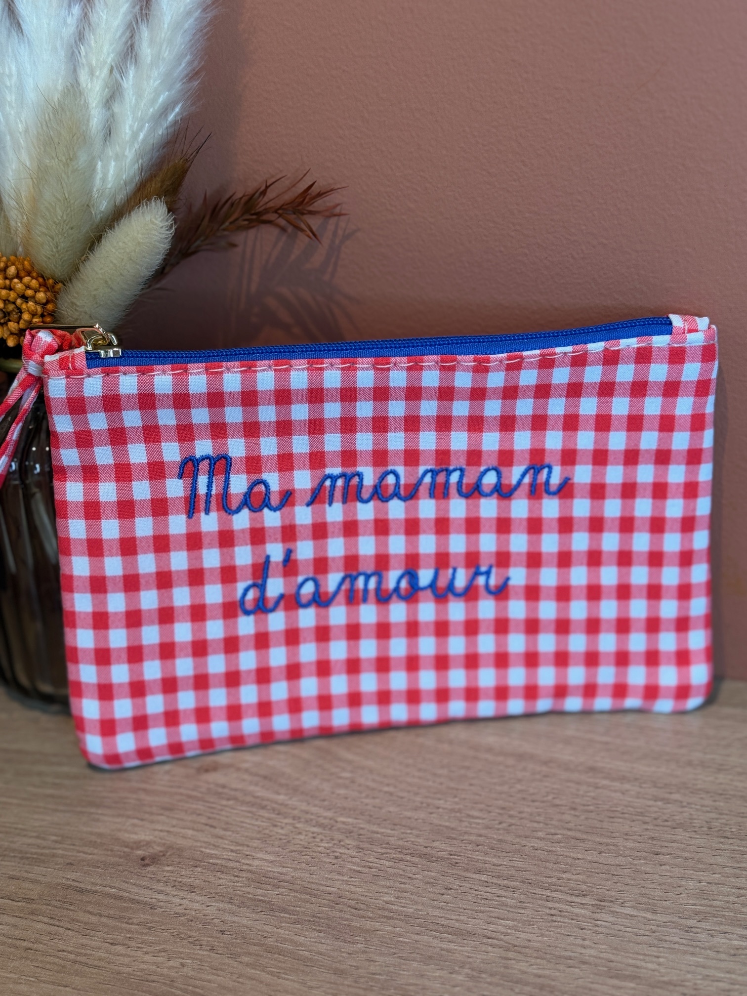 Pochette vichy brodée « Ma maman d’amour » – Un cadeau plein de tendresse