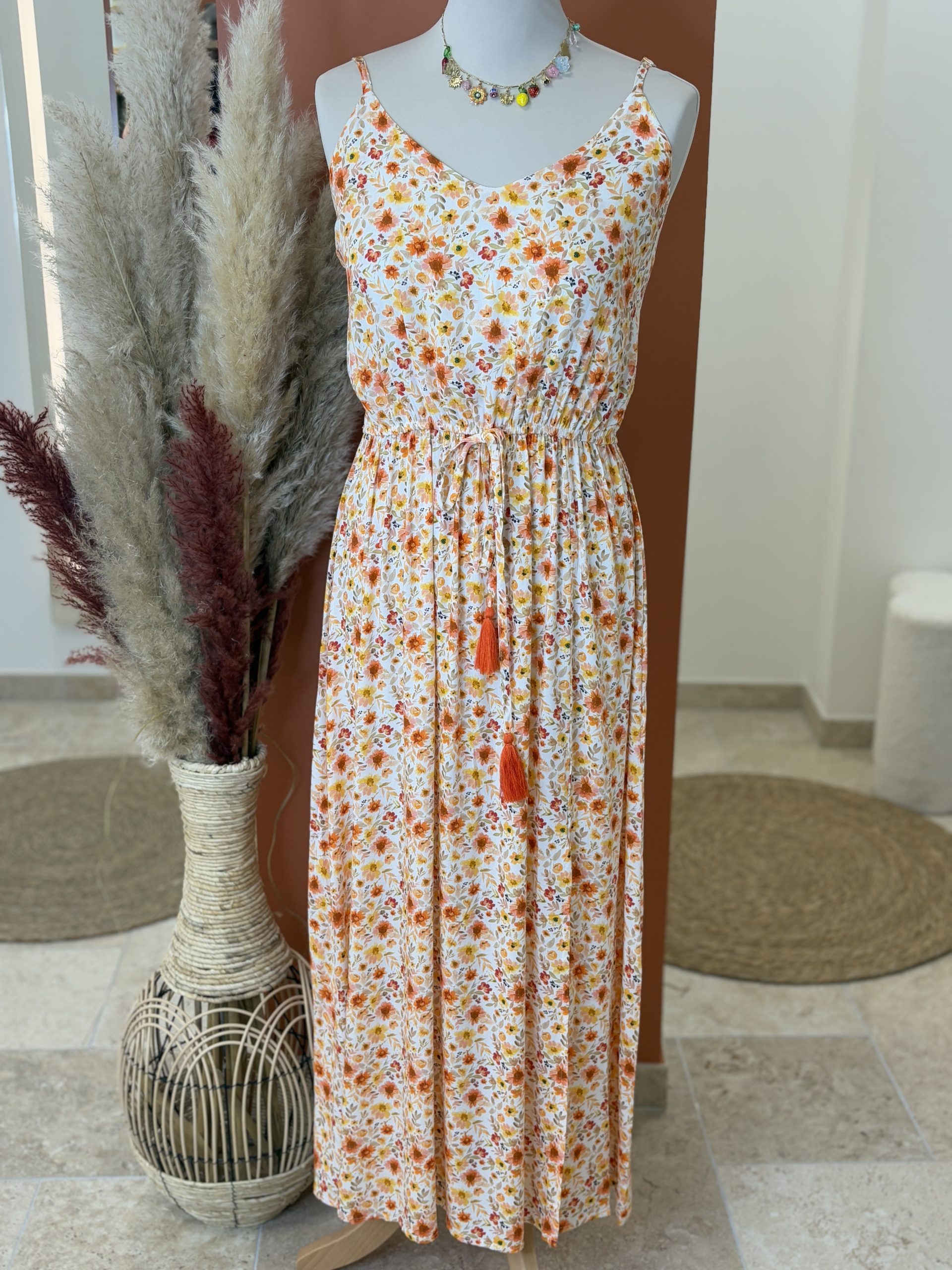 Sublimez votre été avec cette robe orange fleurie au charme bucolique et à la coupe flatteuse. Longue, légère et fluide, elle vous accompagne dans toutes vos journées ensoleillées avec élégance et douceur. Une pièce pensée pour les femmes qui veulent du style sans renoncer au confort.