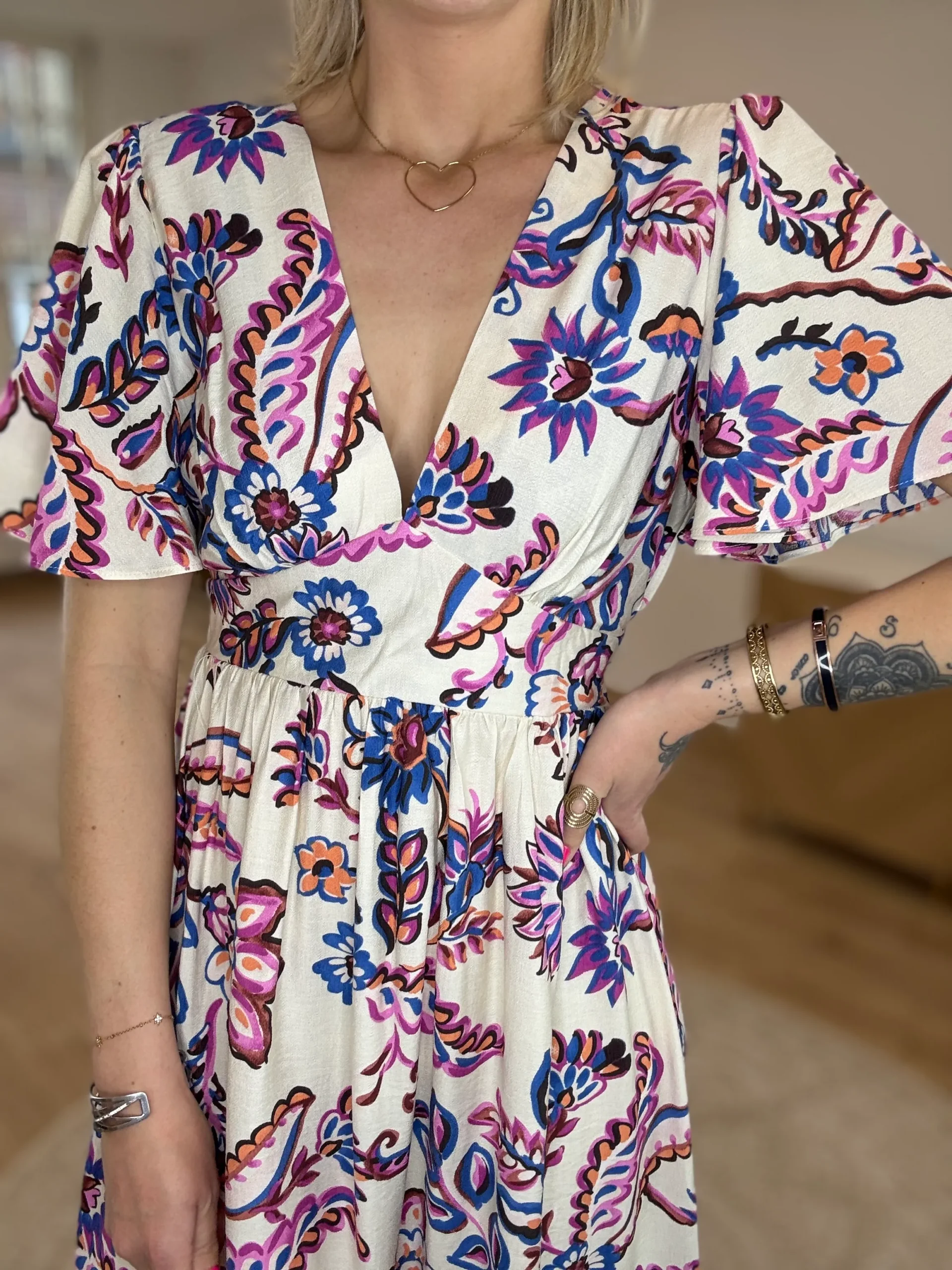 Portez-la avec une veste en jean pour un look bohème chic ou des sandales plates pour une journée ensoleillée. En soirée, elle se marie parfaitement avec des talons fins et une pochette tressée.