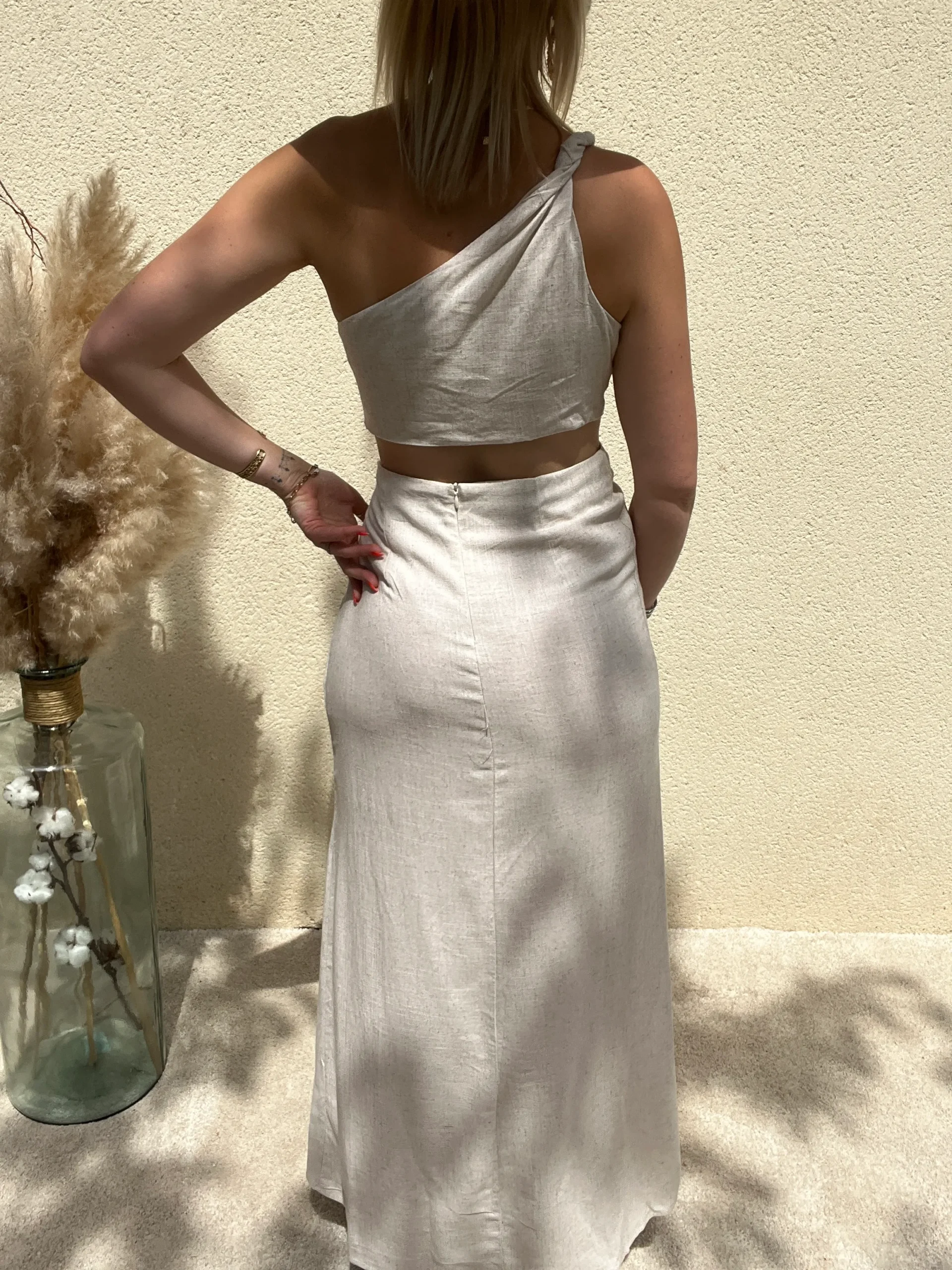 Découvrez la sublime robe longue en lin de Dream By C, un véritable incontournable pour une allure élégante et naturelle. Avec sa coupe asymétrique et ses détails uniques, cette robe deviendra votre pièce préférée pour toutes les occasions estivales.