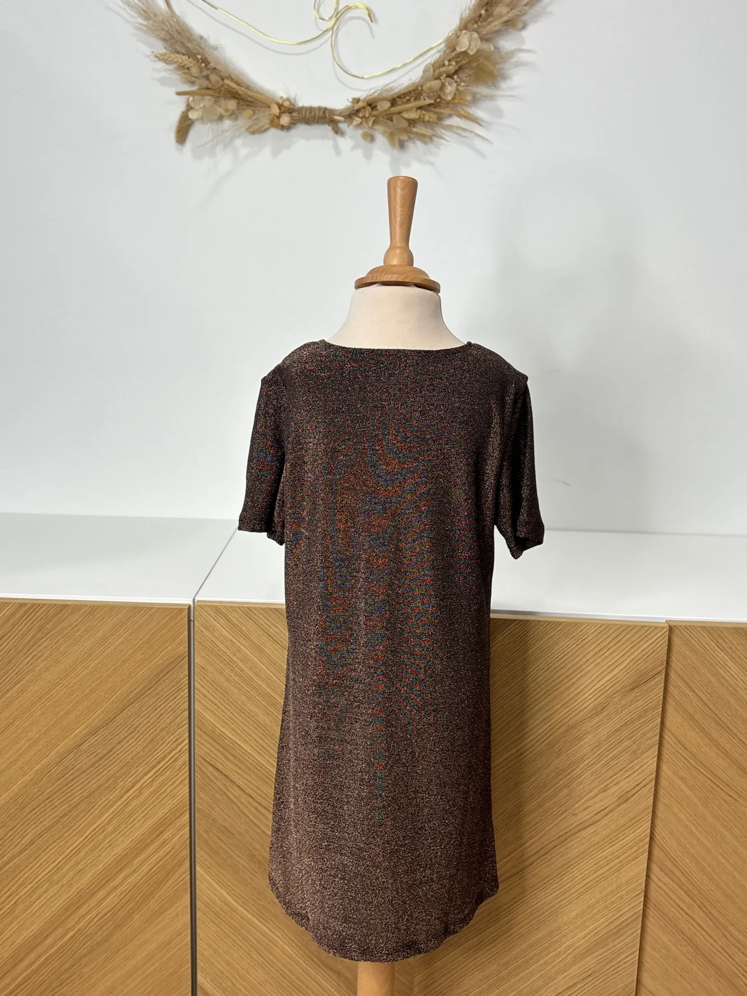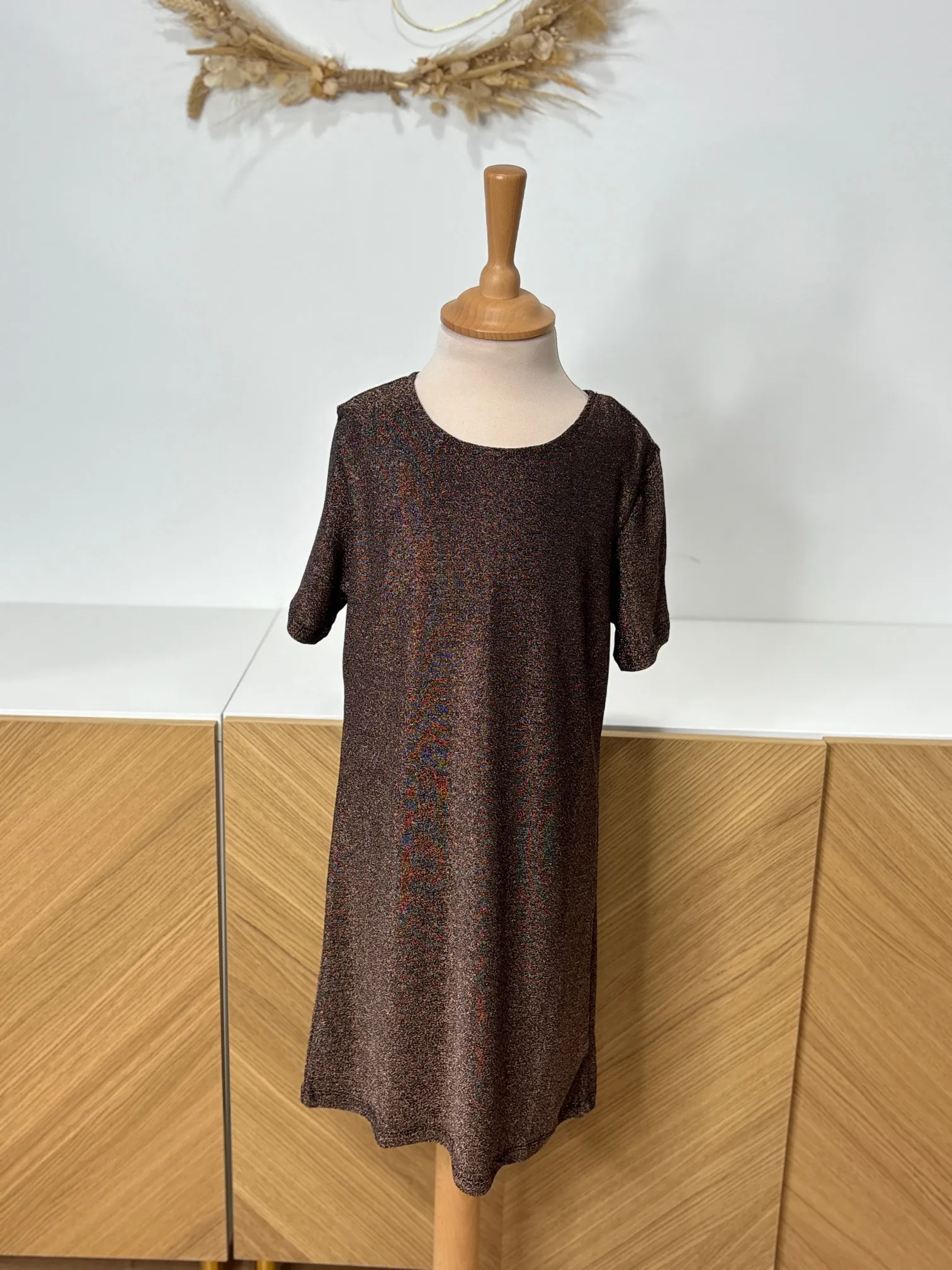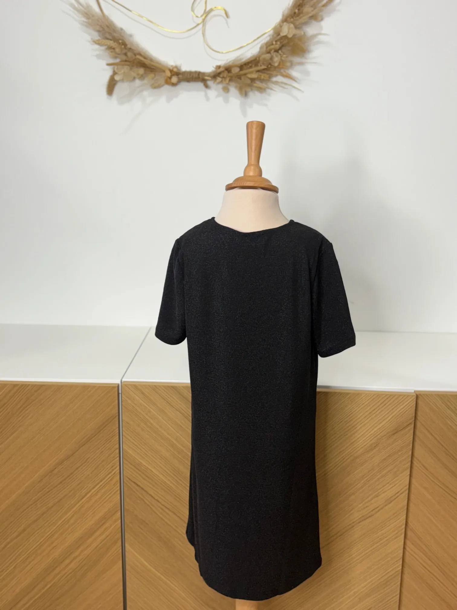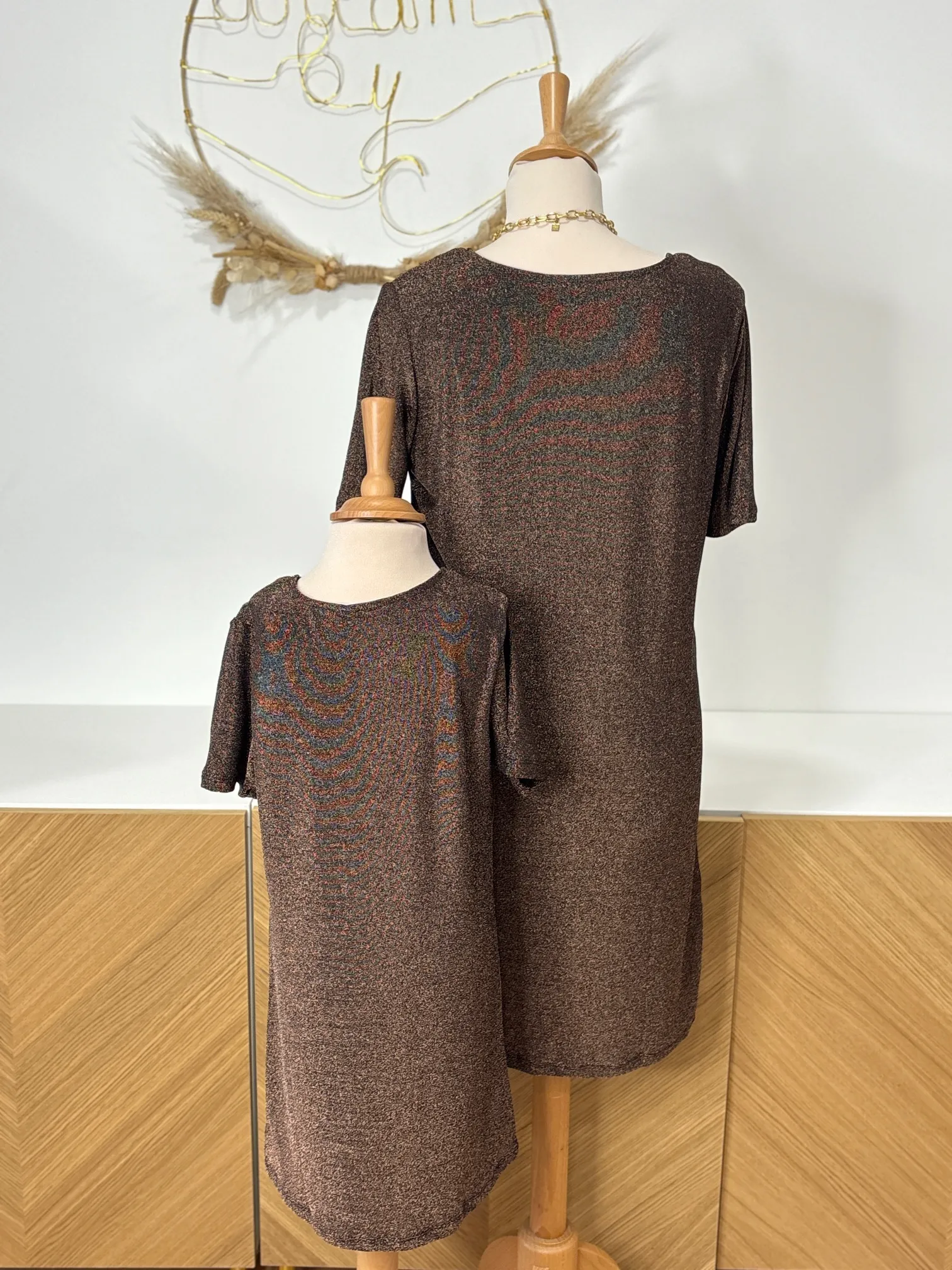 Une coupe simple et élégante, un tissu qui scintille à chaque mouvement et un confort parfait pour danser, rire et briller — sans jamais être gênée.