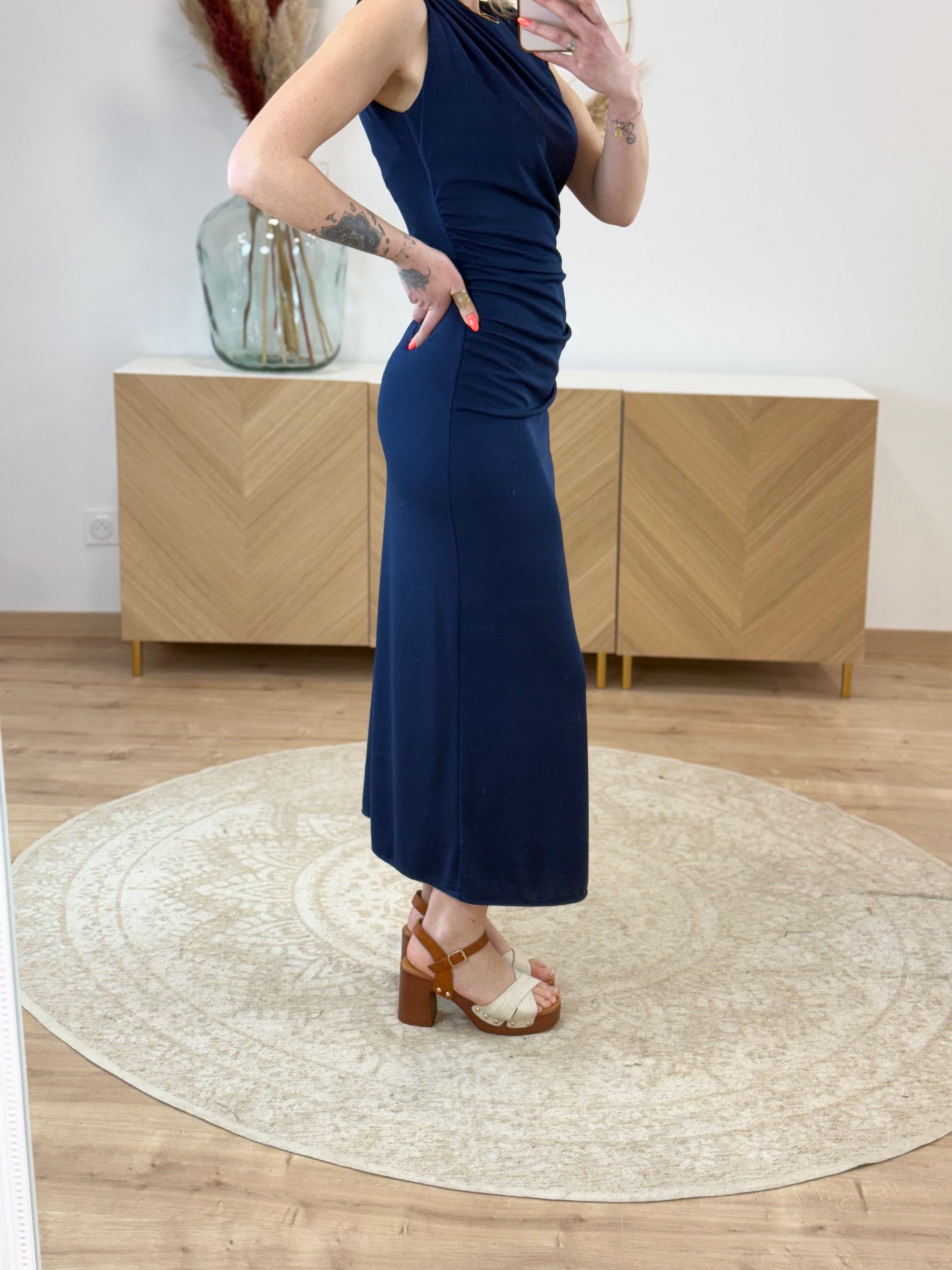 Les robes longues cocktail sont les alliées idéales pour briller lors de vos événements. Grâce à leur coupe fluide, leur matière extensible et leur design épuré, elles assurent un tombé élégant, sans compromis sur le confort. Disponibles en noir classique ou bleu marine profond, ces modèles sans manches offrent une silhouette chic, tout en simplicité.