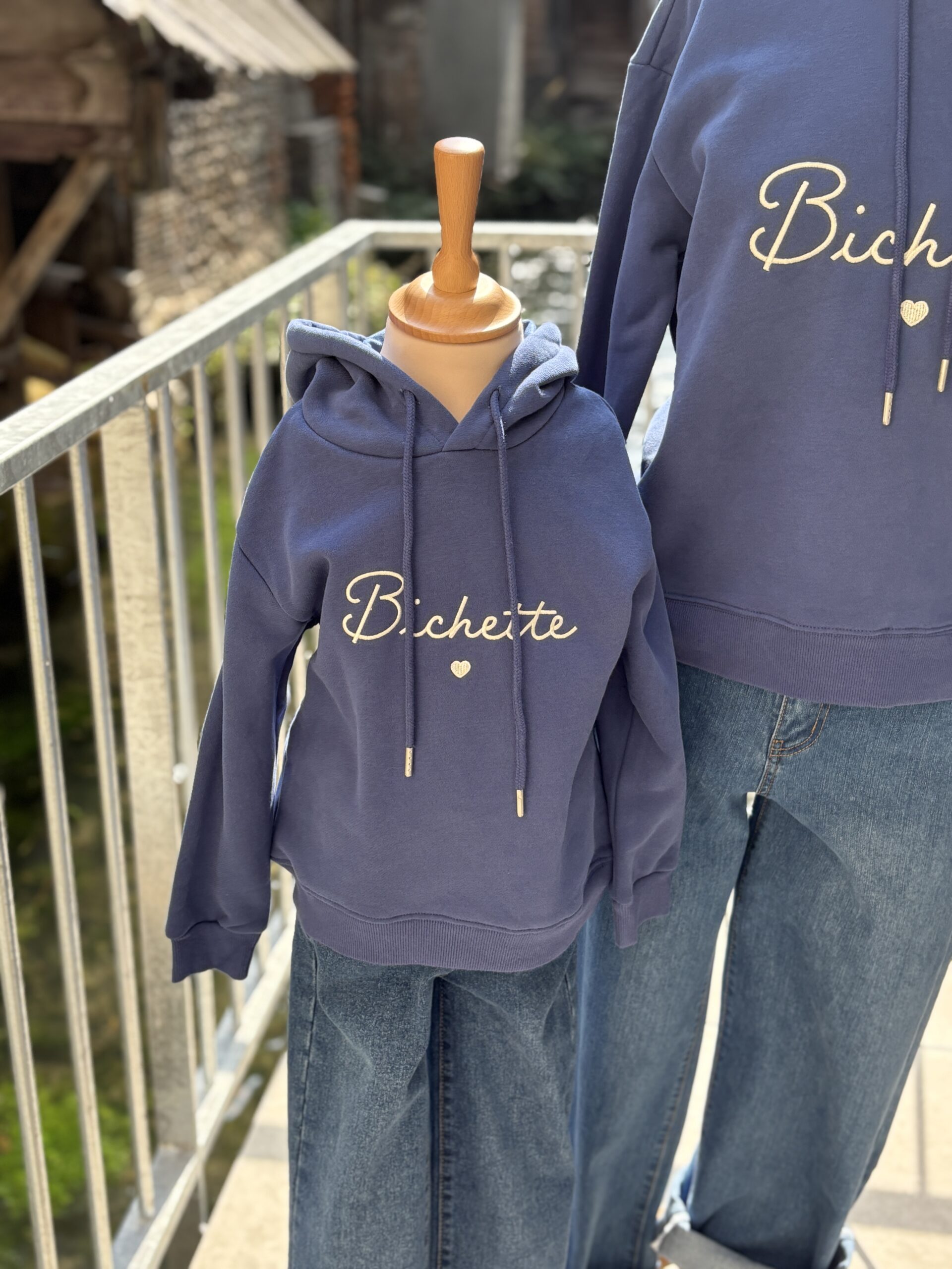 Ce sweat shirt Bichette bleu jean enfant allie confort et style. Idéal pour l’école, les activités de loisirs ou les moments cocooning, il permet de créer facilement un look matchy-matchy avec la version femme. Sa broderie délicate et sa couleur intemporelle en font une pièce incontournable.