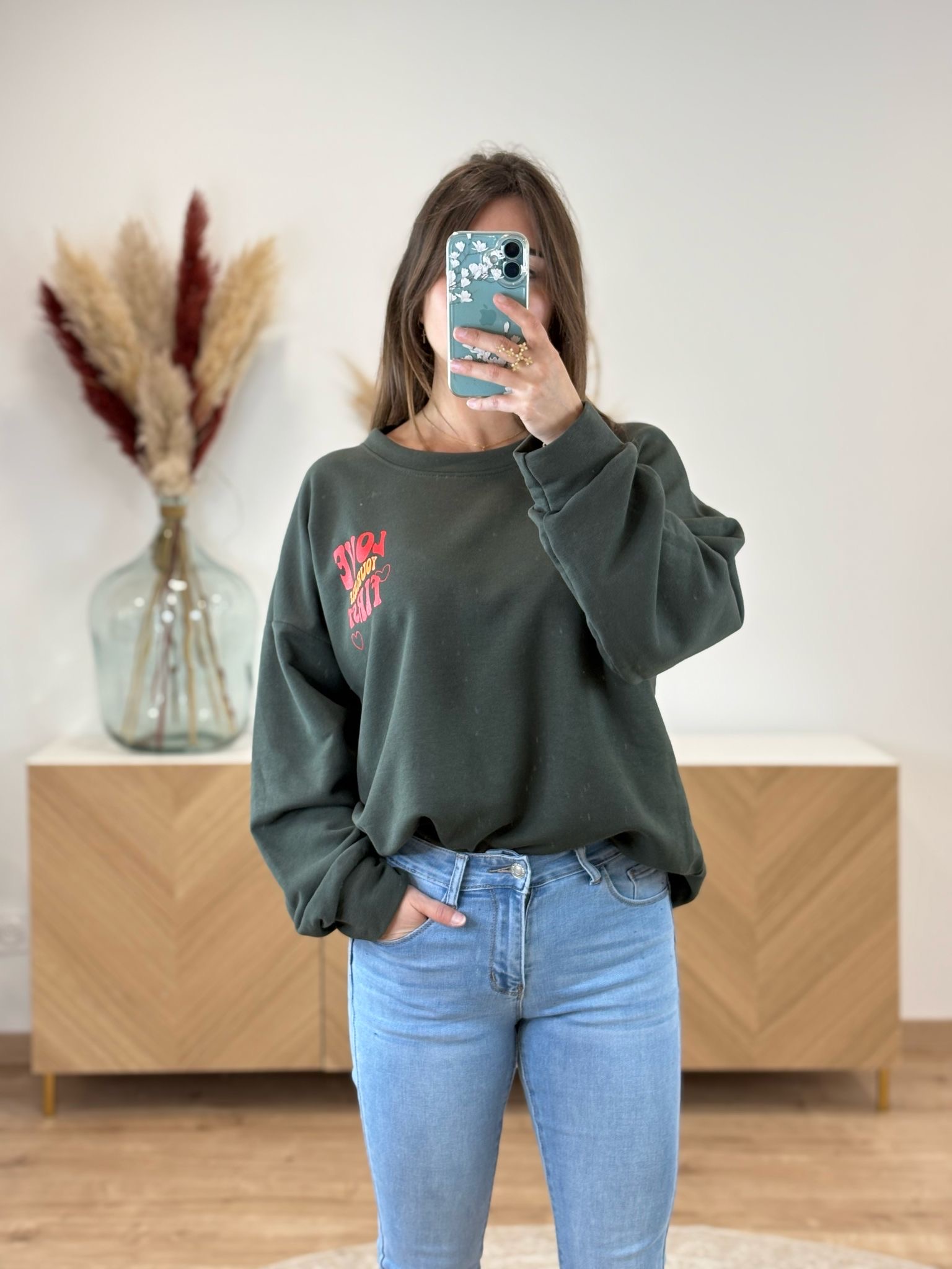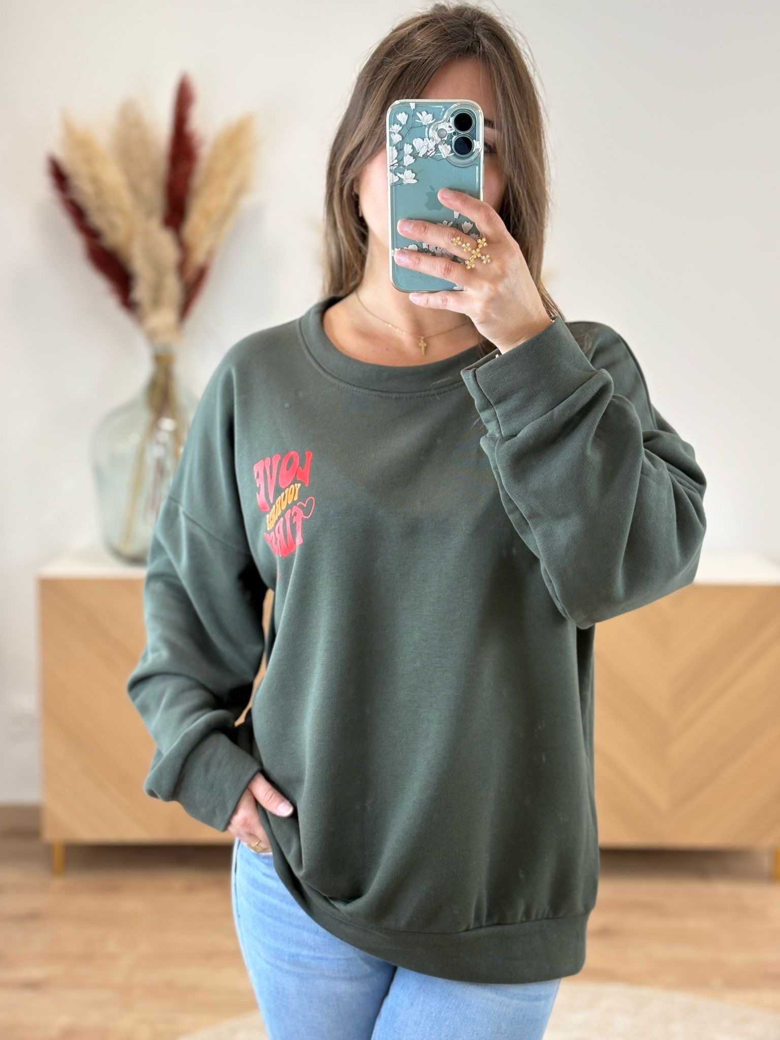 Exprimez votre style et votre positivité avec notre sweat Love « Love yourself first ». Ce modèle confortable et inspirant vous enveloppe de douceur tout en affirmant un message fort. Idéal pour les tenues casual du quotidien, ce sweat à coupe oversize est un indispensable du dressing féminin. Il convient parfaitement du 34 au 42.