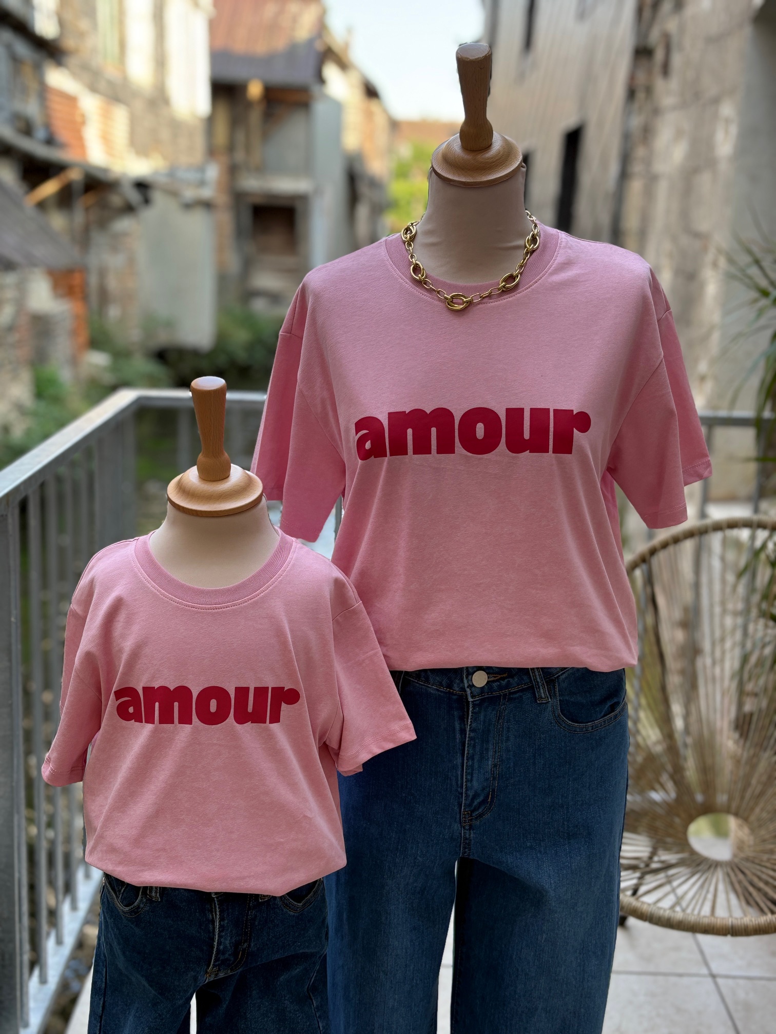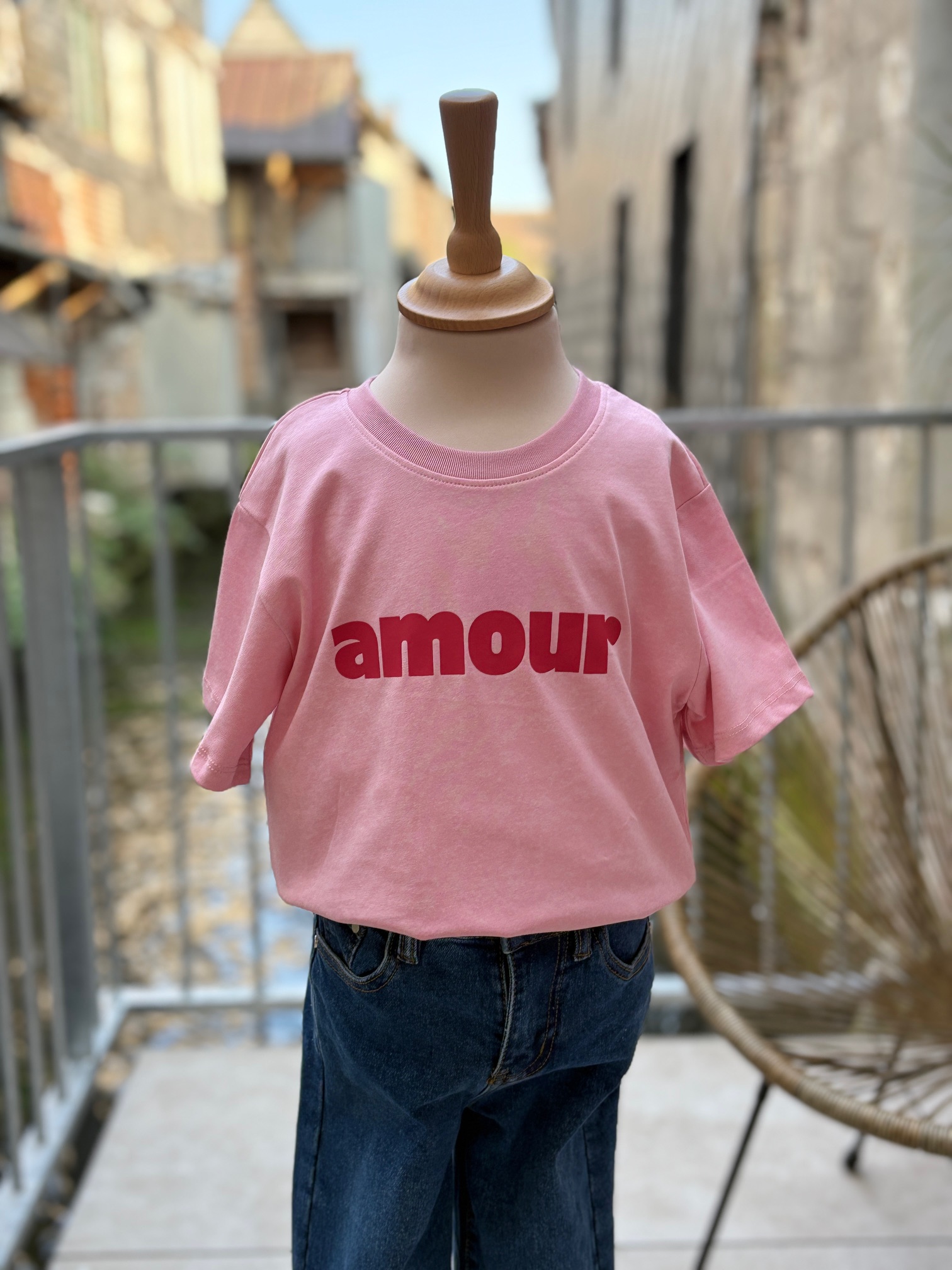 Offrez à votre enfant un vêtement tendance et confortable avec notre t-shirt amour rose. Fabriqué en 100 % coton, il est doux, respirant et agréable à porter. Son inscription « amour » en rouge vif apporte une touche moderne et joyeuse, idéale pour un look estival ou décontracté.