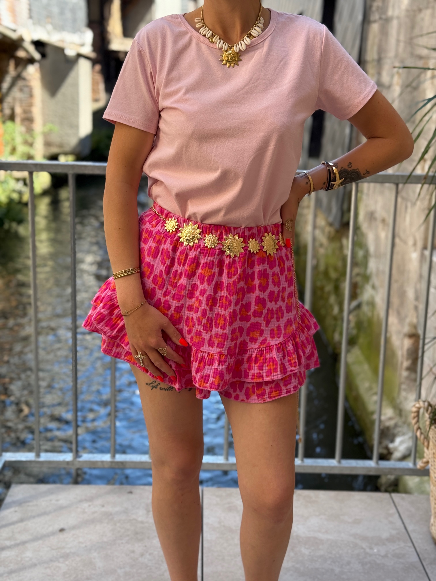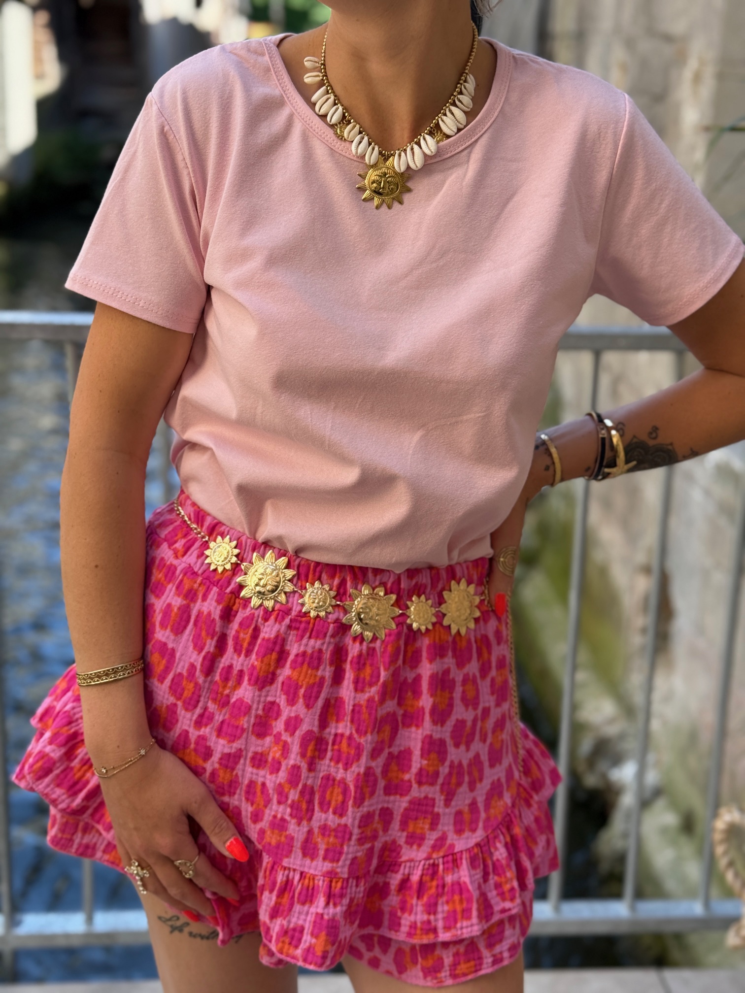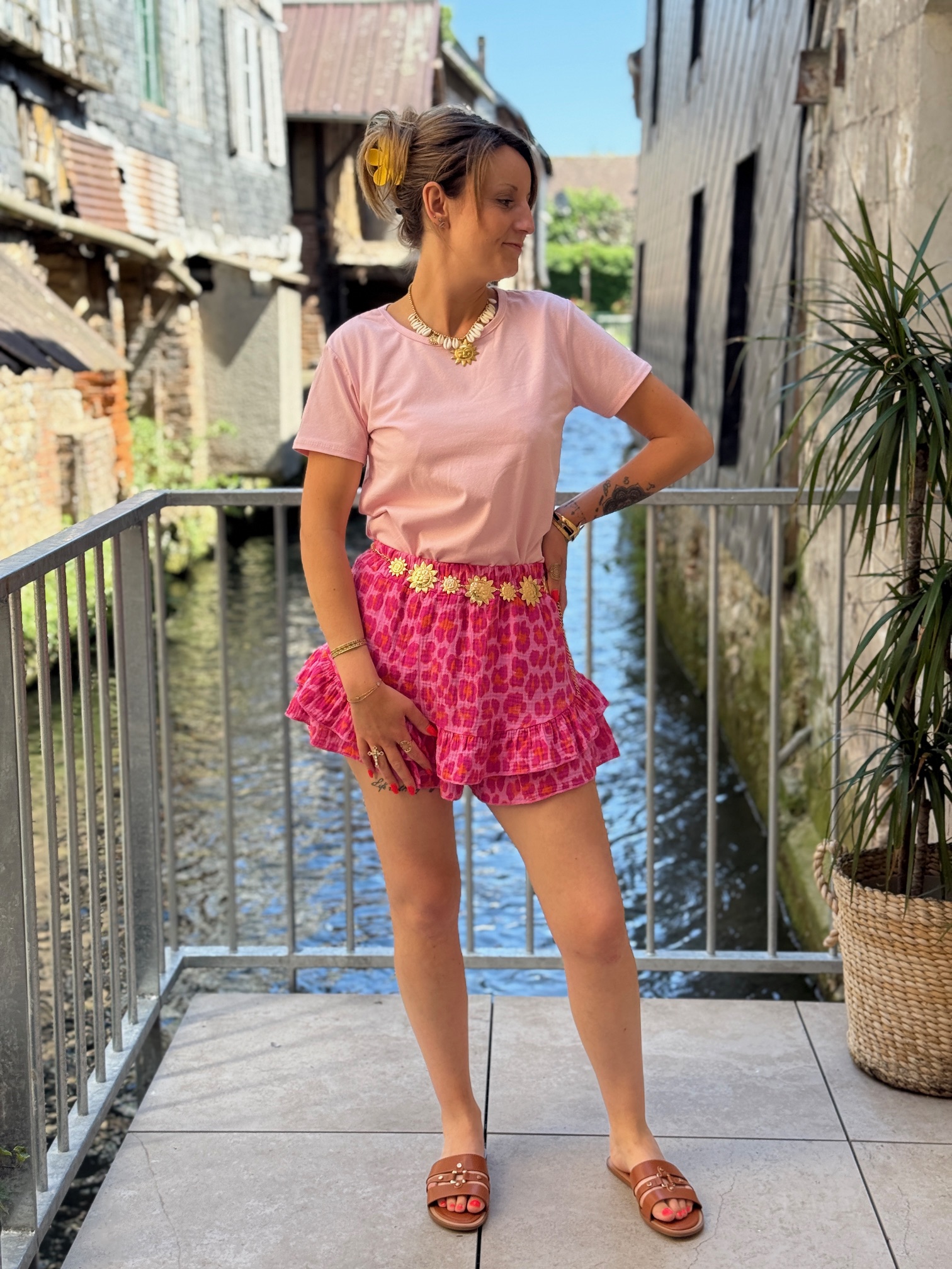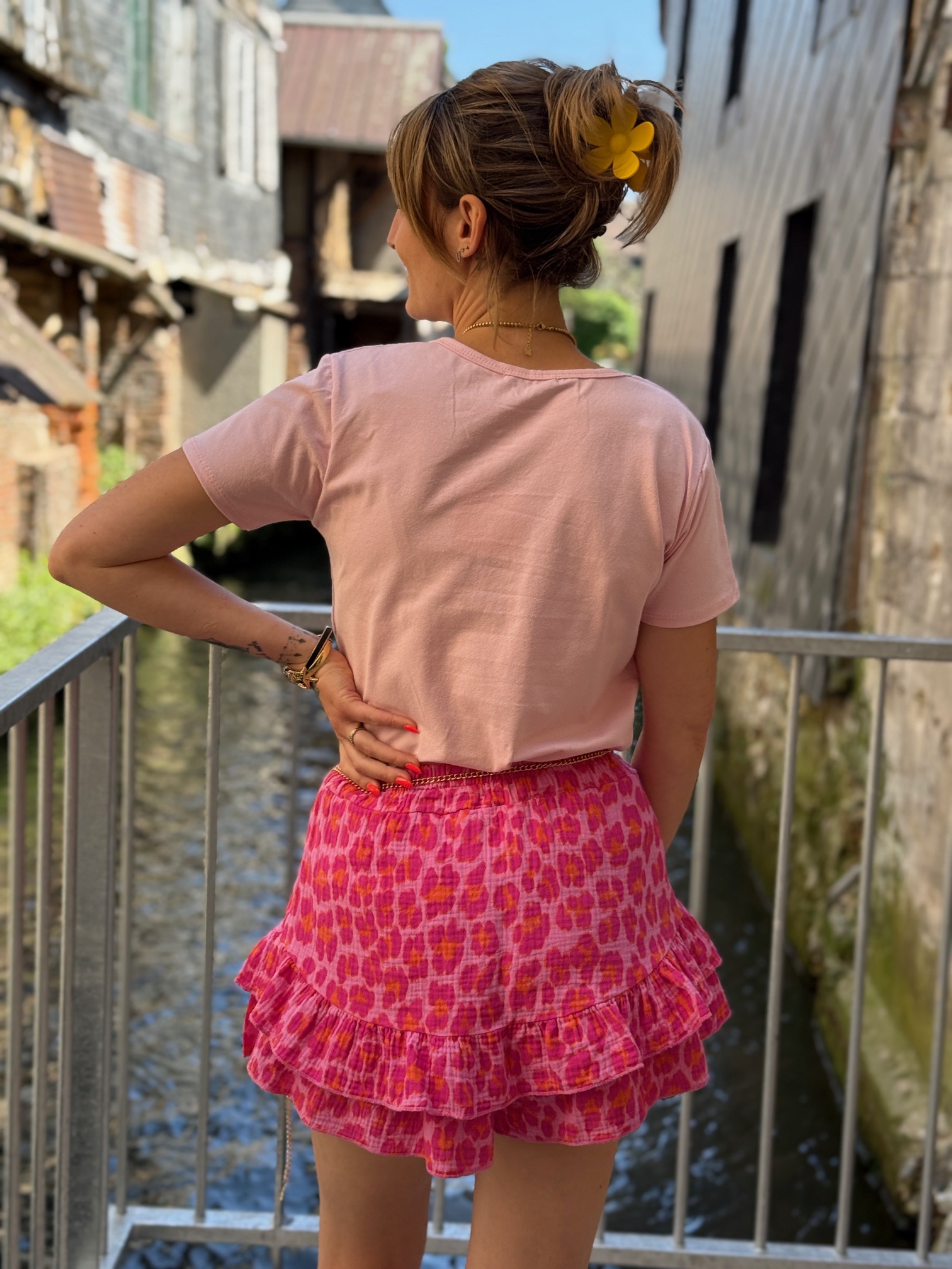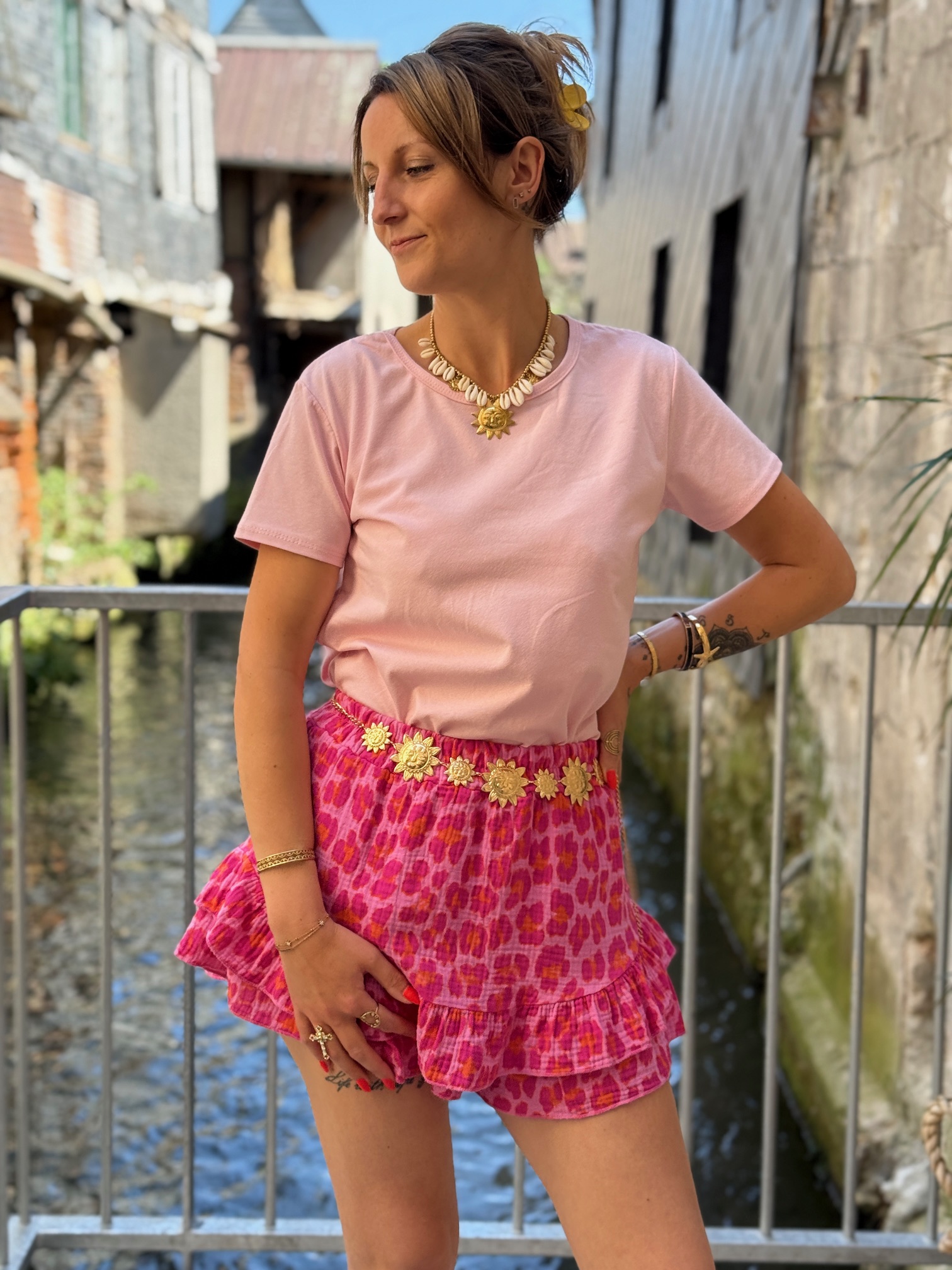 Ce t-shirt basique rose est un indispensable du vestiaire féminin. Léger, agréable à porter et facile à associer, il vous accompagnera tout au long de l’année.