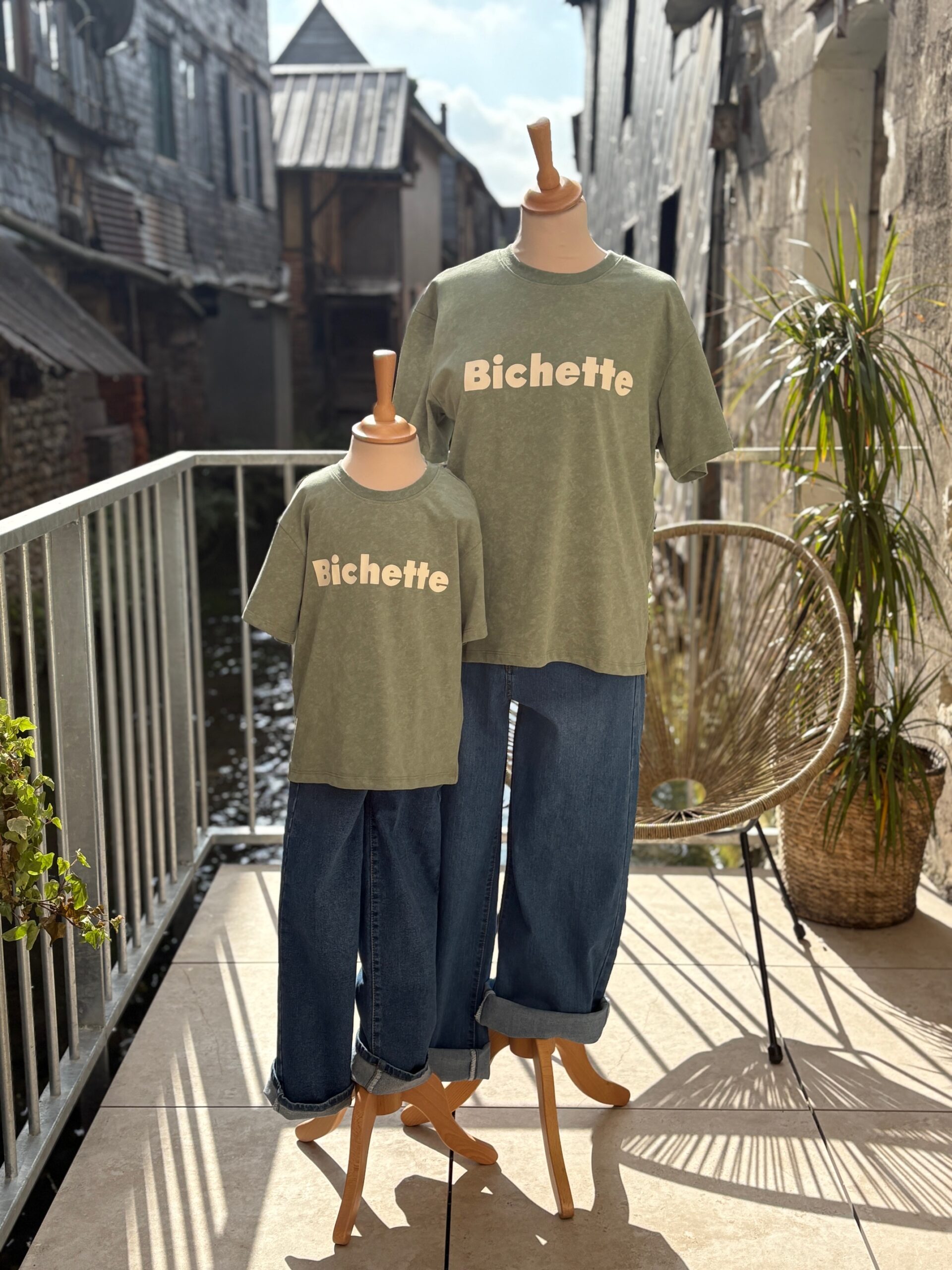 Affirmez votre style avec ce tee shirt vert sauge femme à message. Sa teinte douce et sa coupe droite s’adaptent à toutes les morphologies pour un look casual et féminin. Le mot Bichette apporte une touche d’humour et de tendresse à votre tenue.