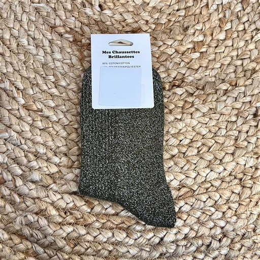 V306- Chaussettes Paillettes « Mon Coeur » (kaki)