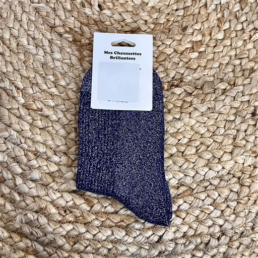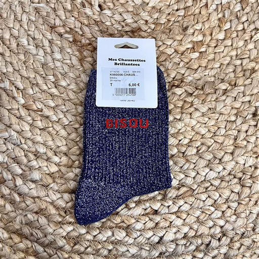V317- Chaussettes paillettes « Bisou » (marine)