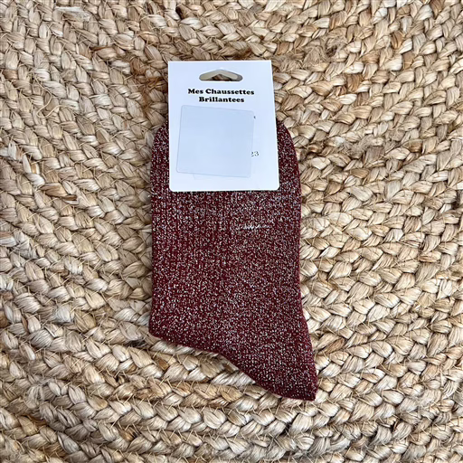 V317- Chaussettes paillettes « Bisou » (rouille)