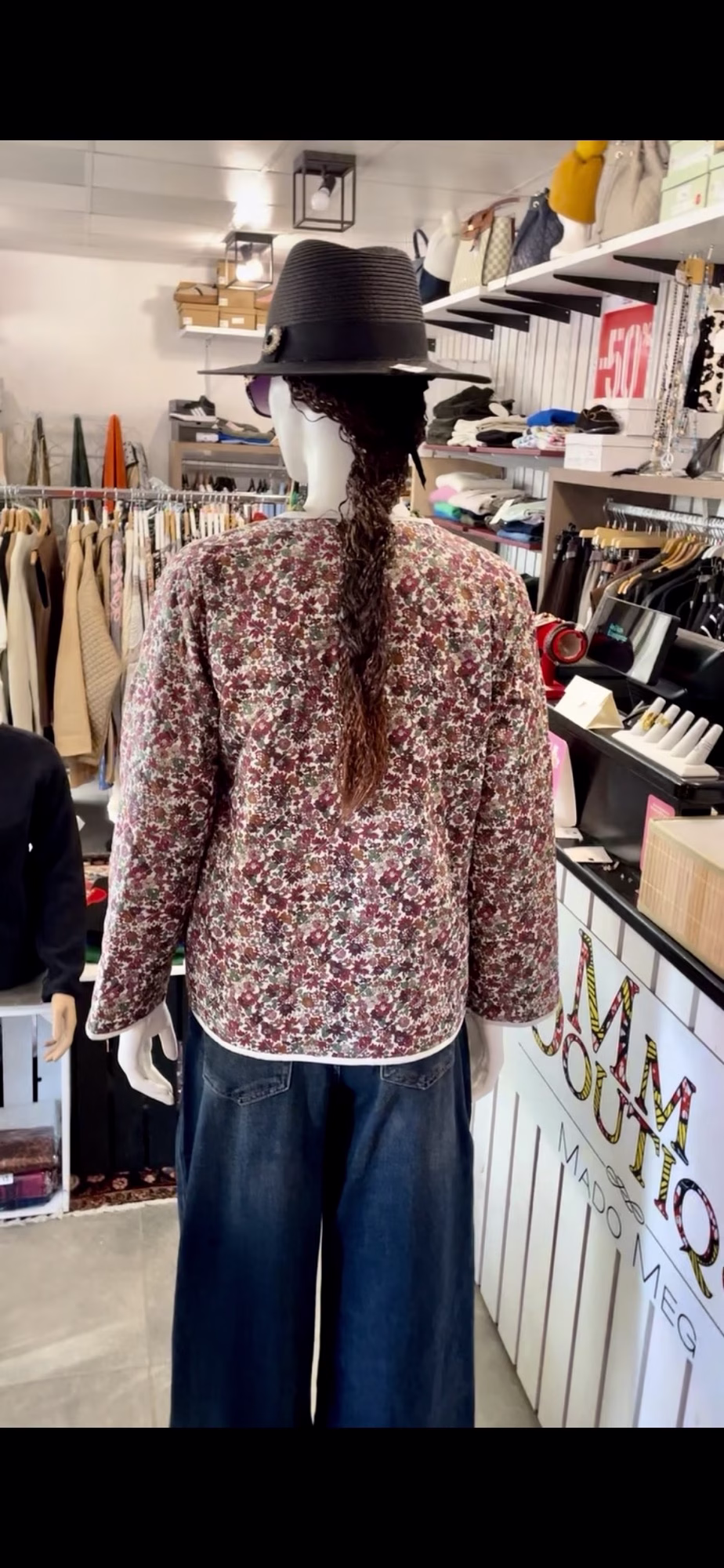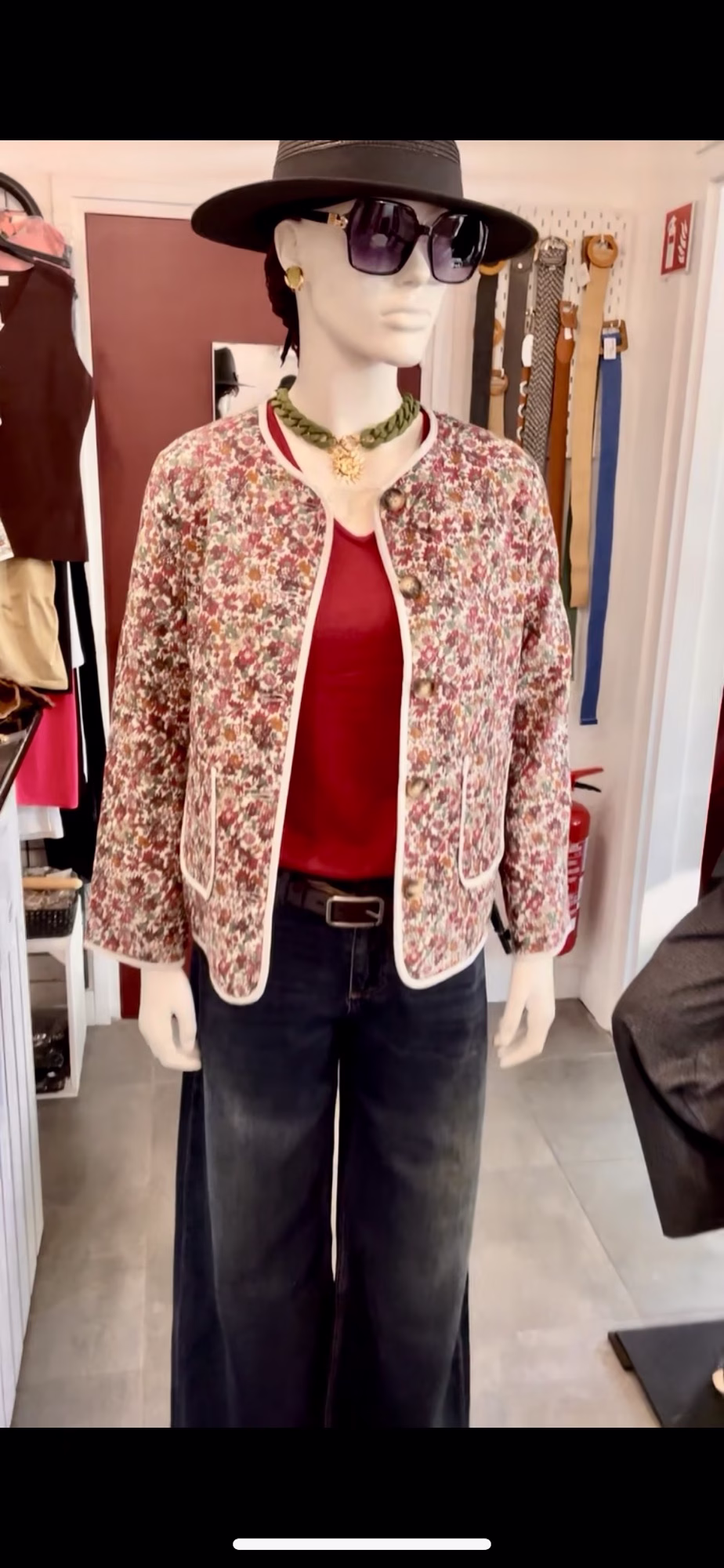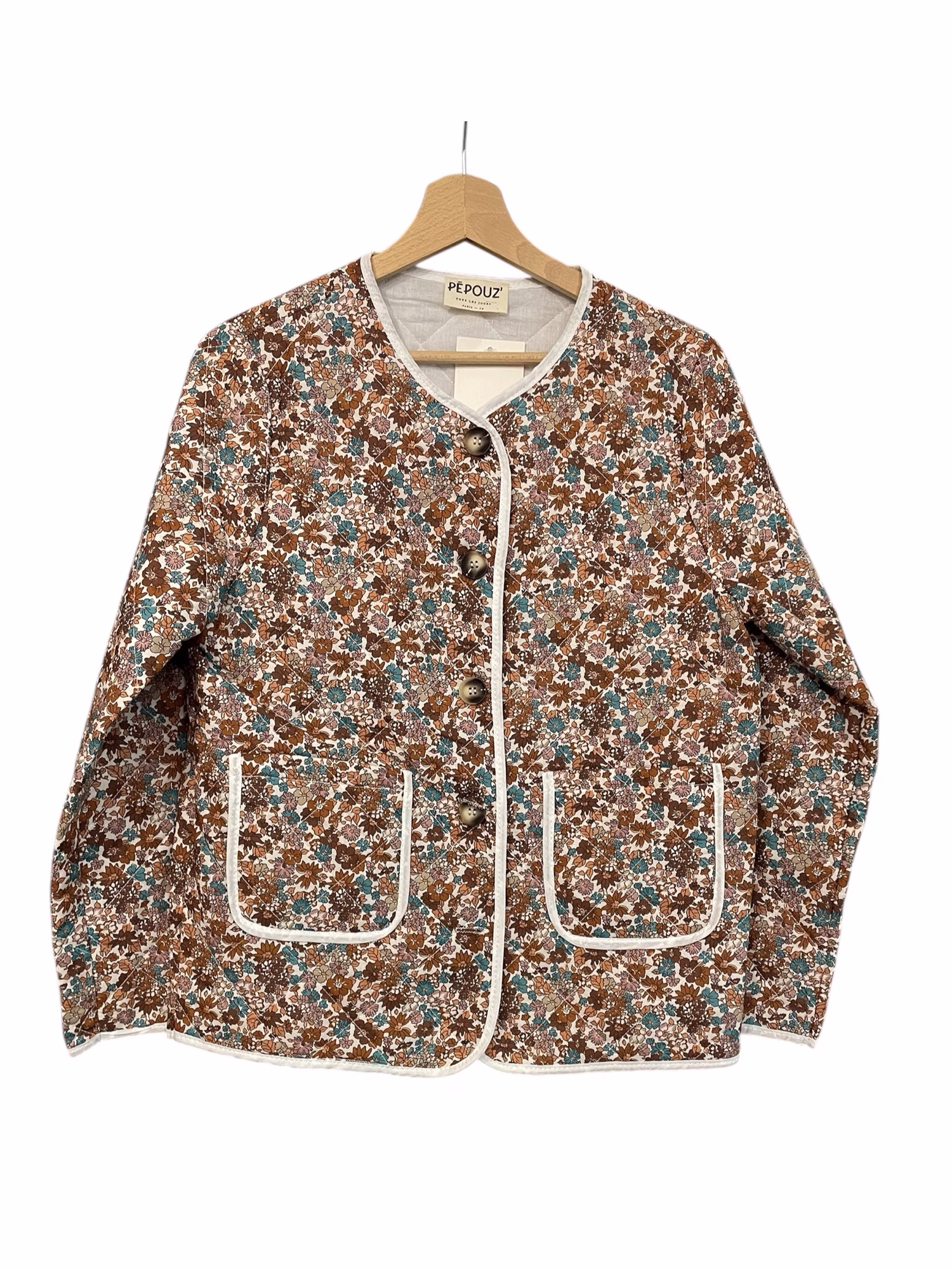 veste fleurie matelassée, deux poches a l avant et une série de boutons