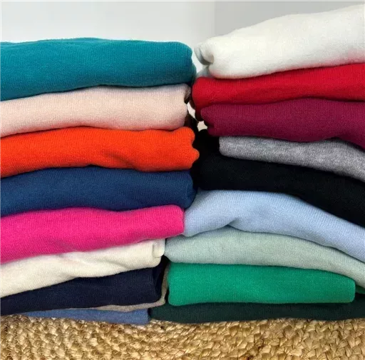 Des BASICS déclinés dans une palette de couleurs irrésistibles. Différents modèles en laine cachemire se déclinant au fil des mois en: col rond, col V, col roulé …