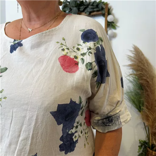 Si vous n’avez pas peur de l’originalité, adoptez cette tunique à l’imprimé floral , manches courtes, vol V. Coupe trapèze, large et fendue sur les coté. Proposée en taille unique dans nos collections “Jolies Formes”, cette tunique à manches courtes convient de la Taille 42 à la taille 48 en fonction des différentes morphologies. C’est une pièce que vous pourrez associer facilement à nos jeans, à nos treggings Christy ou à nos pantalons JST. Toutes les combinaisons sont possibles !