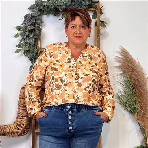 Z116- Blouse « Christy » Fleurs (T44-T52) (camel)