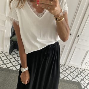 Tee shirt V dentelle blanc oversize