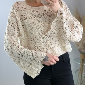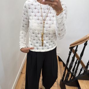 Top dentelle écru doux et chaud