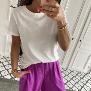 Tee shirt liseret col doré blanc