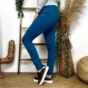 O162- Jean coupe Slim (T34-T44) (bleu pétrole)