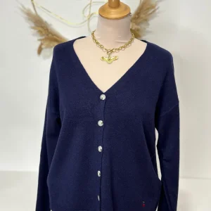Gilet cerise bleu marine femme