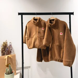 Gilet moumoute chocolat avec patch coeur enfants