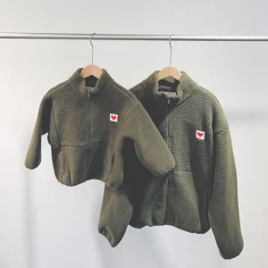 Gilet moumoute kaki avec patch coeur enfants