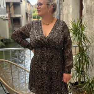 Robe courte léopard noire et marron