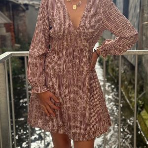 Robe courte taupe et chocolat liberty